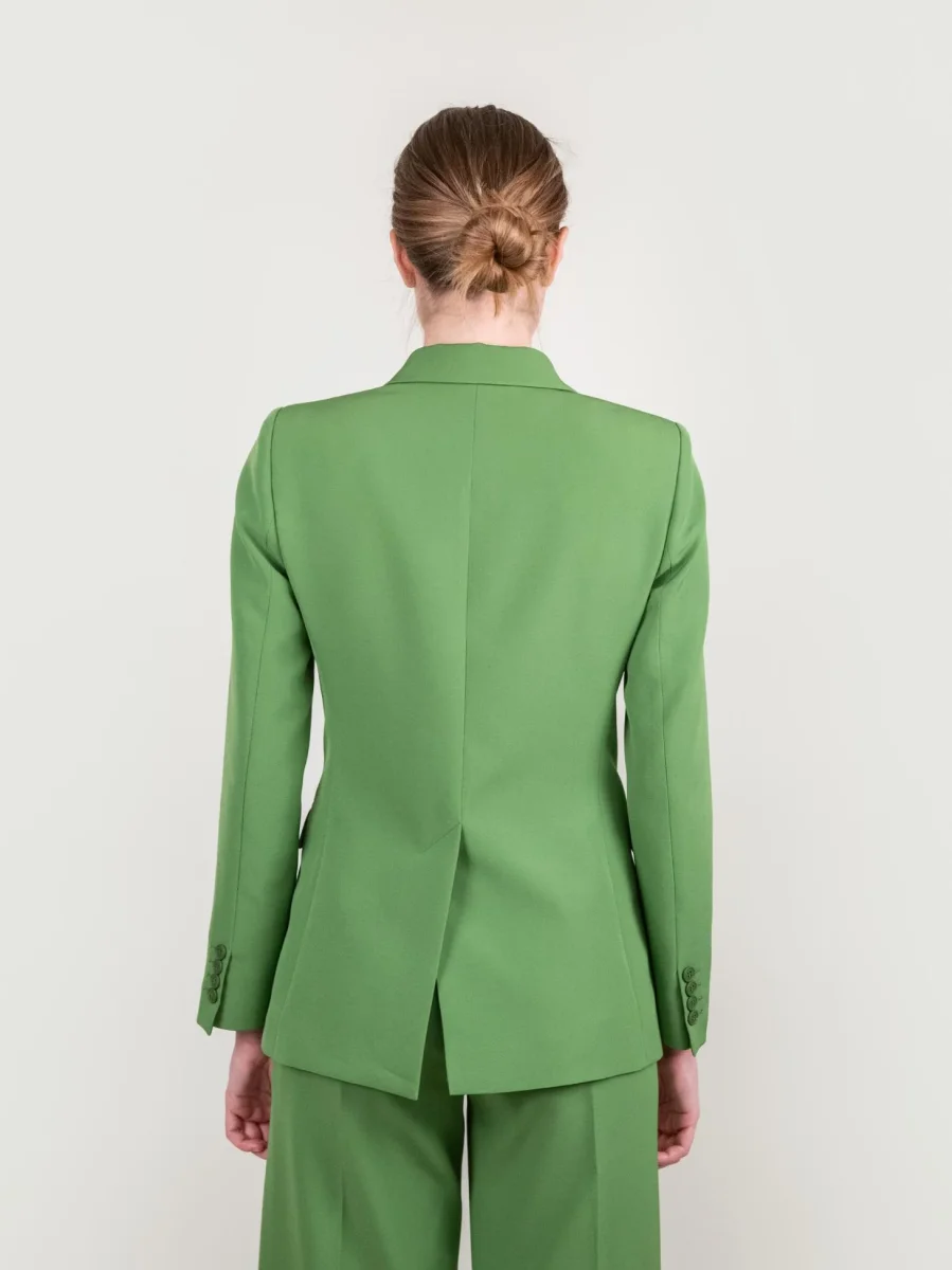 Dettaglio bottoni in tonalità sulla parte frontale e su entrambi i polsi.