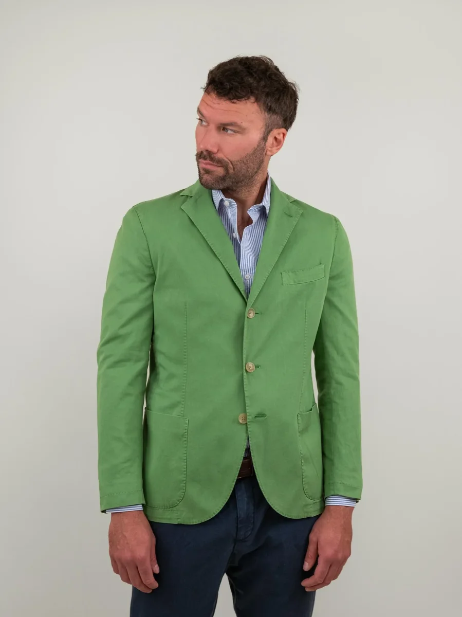 Blazer in tessuto misto lana e cotone spigato beige tono su tono.