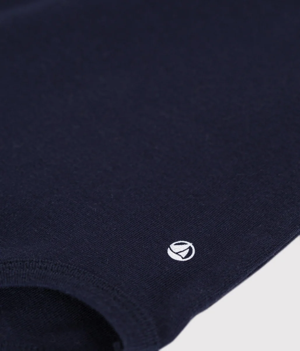 Body a tinta unita blu scuro, a manica lunga, a costine, il tessuto emblematico di Petit Bateau.