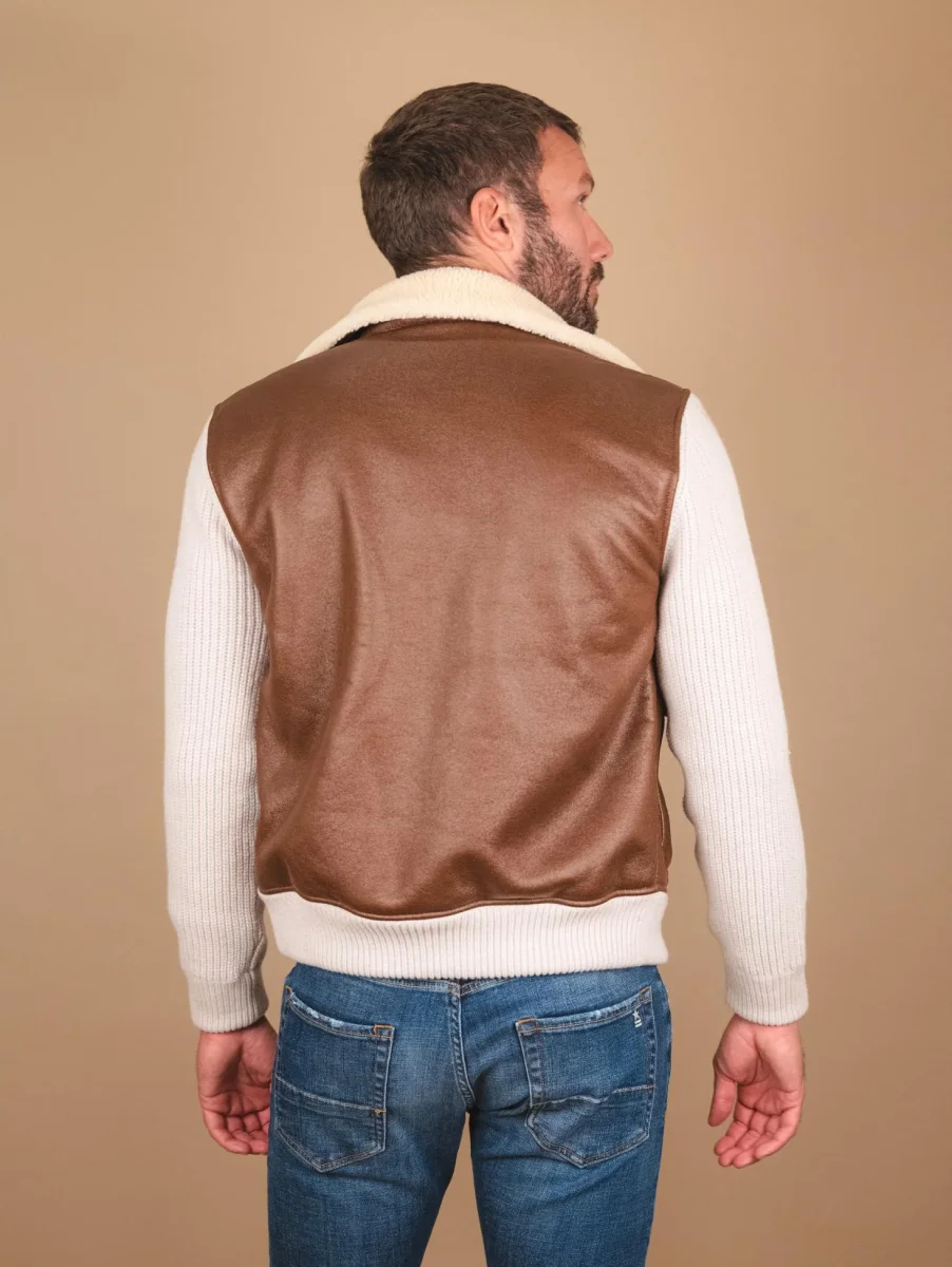 Giubbotto bomber in lana vergine e alcantara, un materiale sintetico di alta qualità prodotto da una combinazione di poliuretano e poliestere che lo rendono resistente, morbido al tatto e piacevole al contatto con la pelle. È resistente all’usura, alle macchie e all’abrasione, ed è anche relativamente facile da pulire e mantenere. Chiusura zip in metallo frontale. Maxi tasche applicate. Le maniche e i profili del capo sono tutti in lana vergine mentre la parte anteriore del capo e quella frontale sono in alcantara: il risultato è un mix di tessuti e colori caldi perfetti per l’inverno. Rivestimento interno in eco montone. Peso abbondante. Vestibilità morbida.