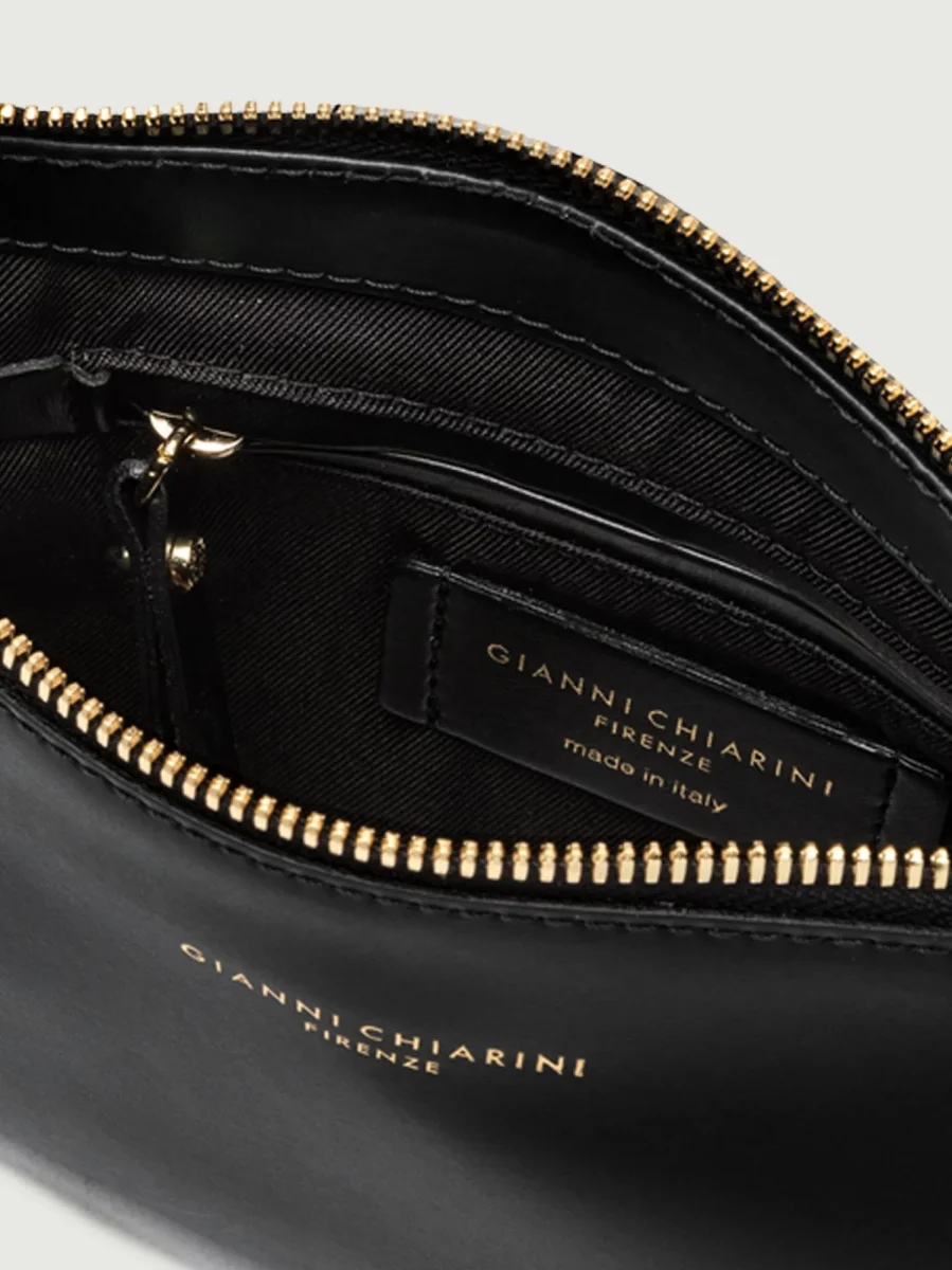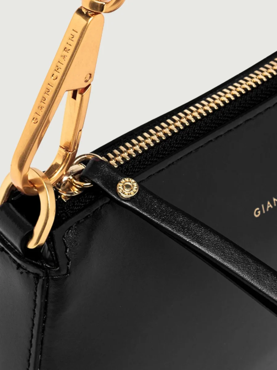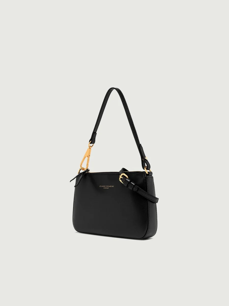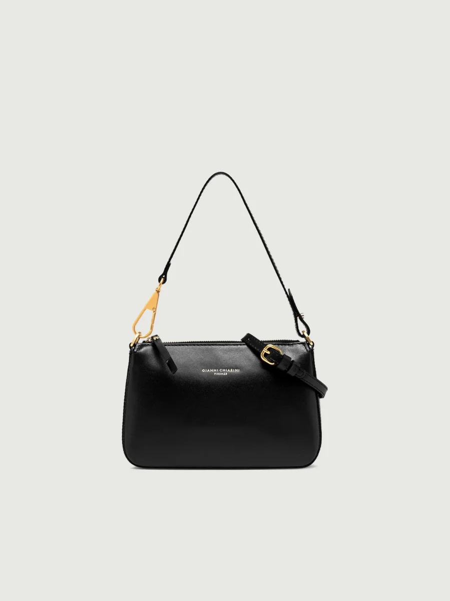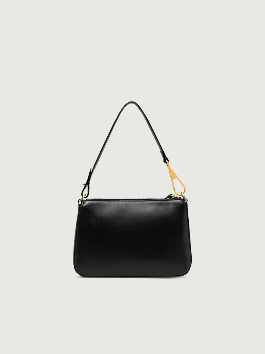 Borsa a spalla Brooke in pelle liscia nera.