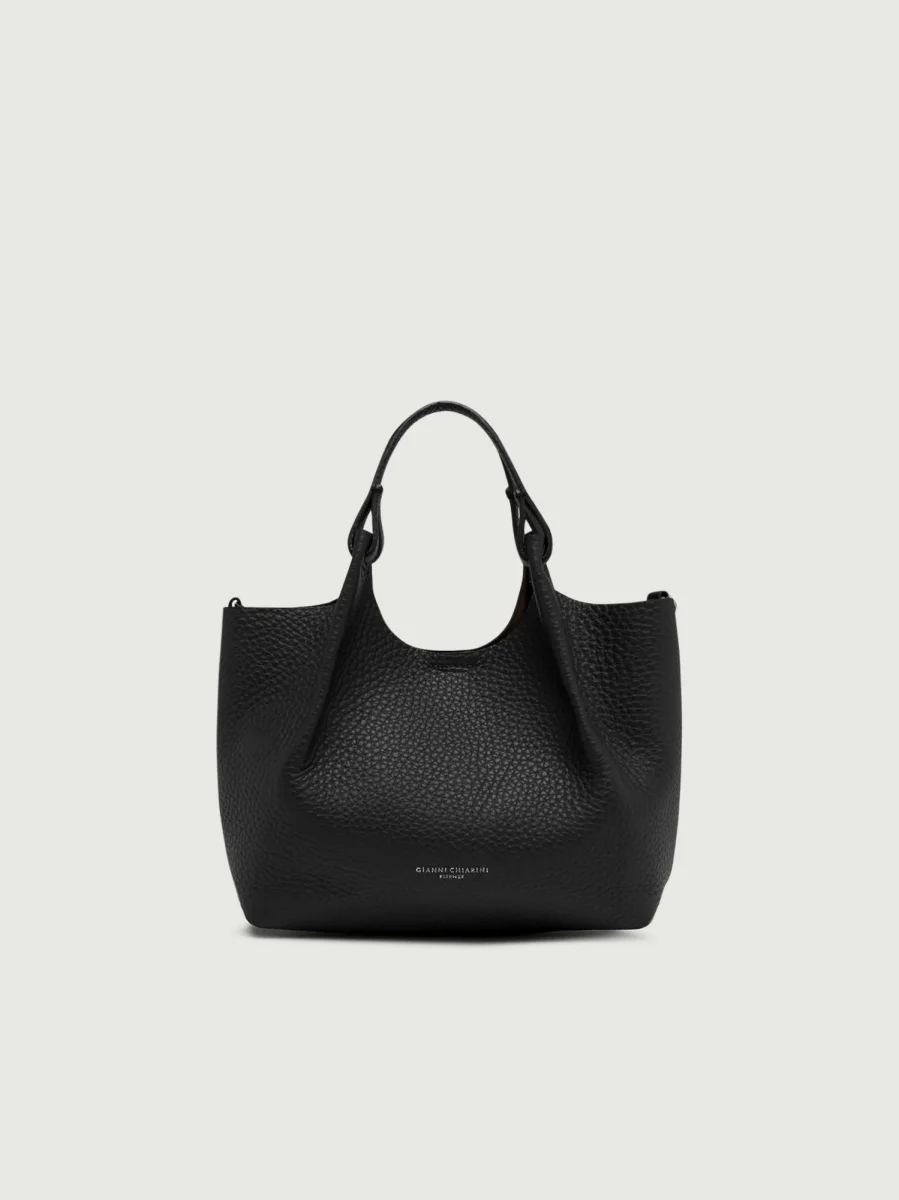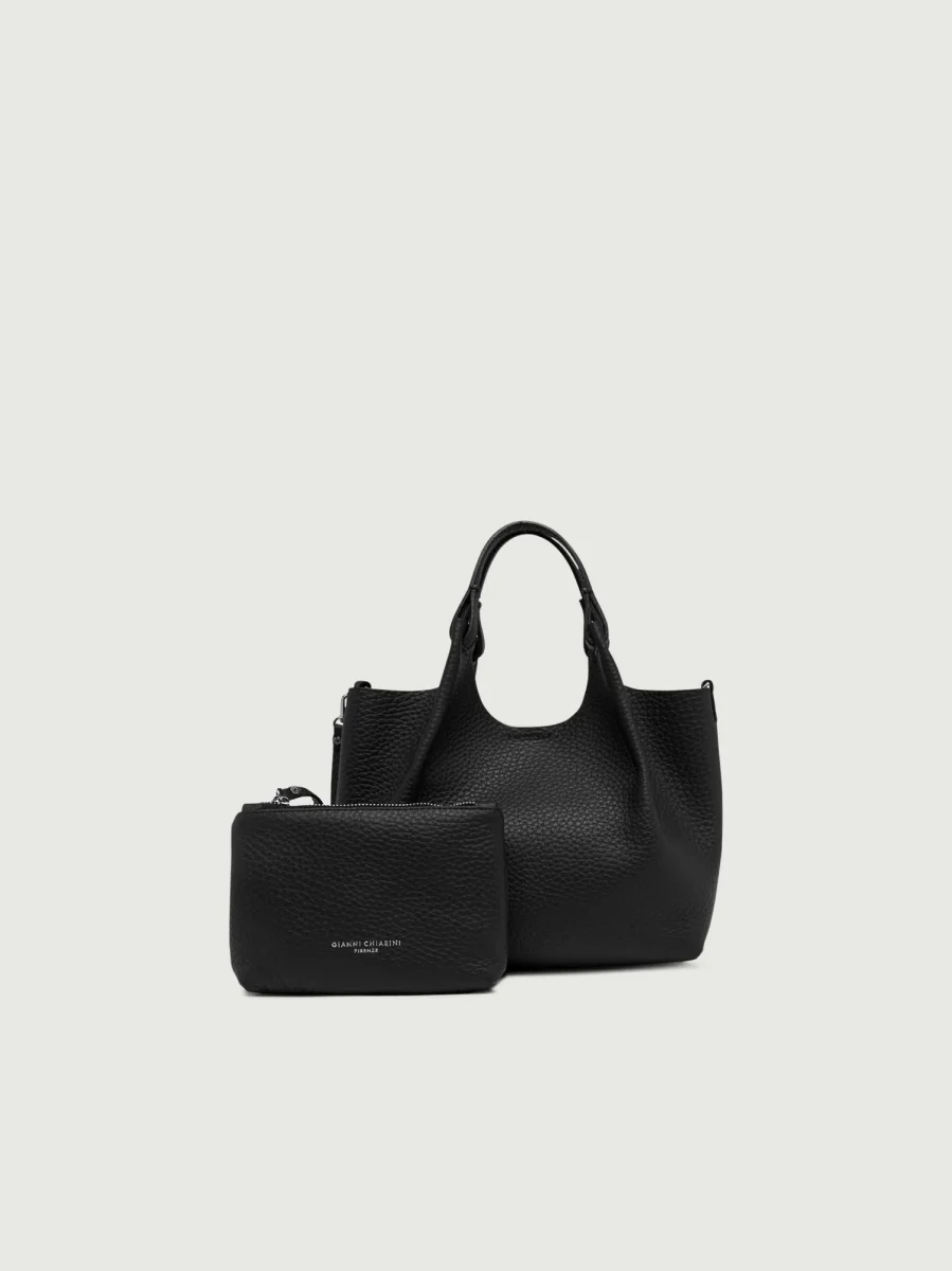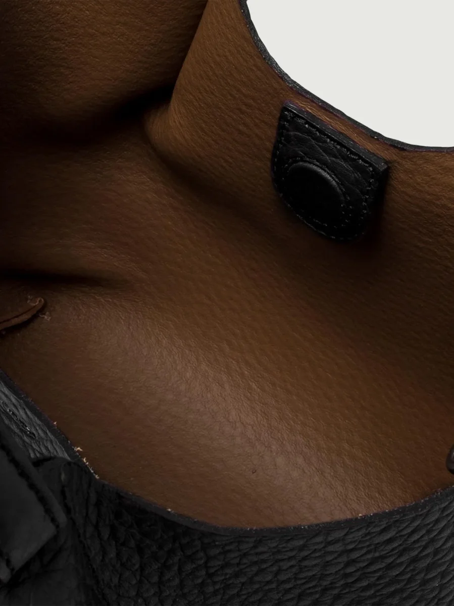 Borsa a spalla Dua color nero-castoro in pelle double grana maxi.