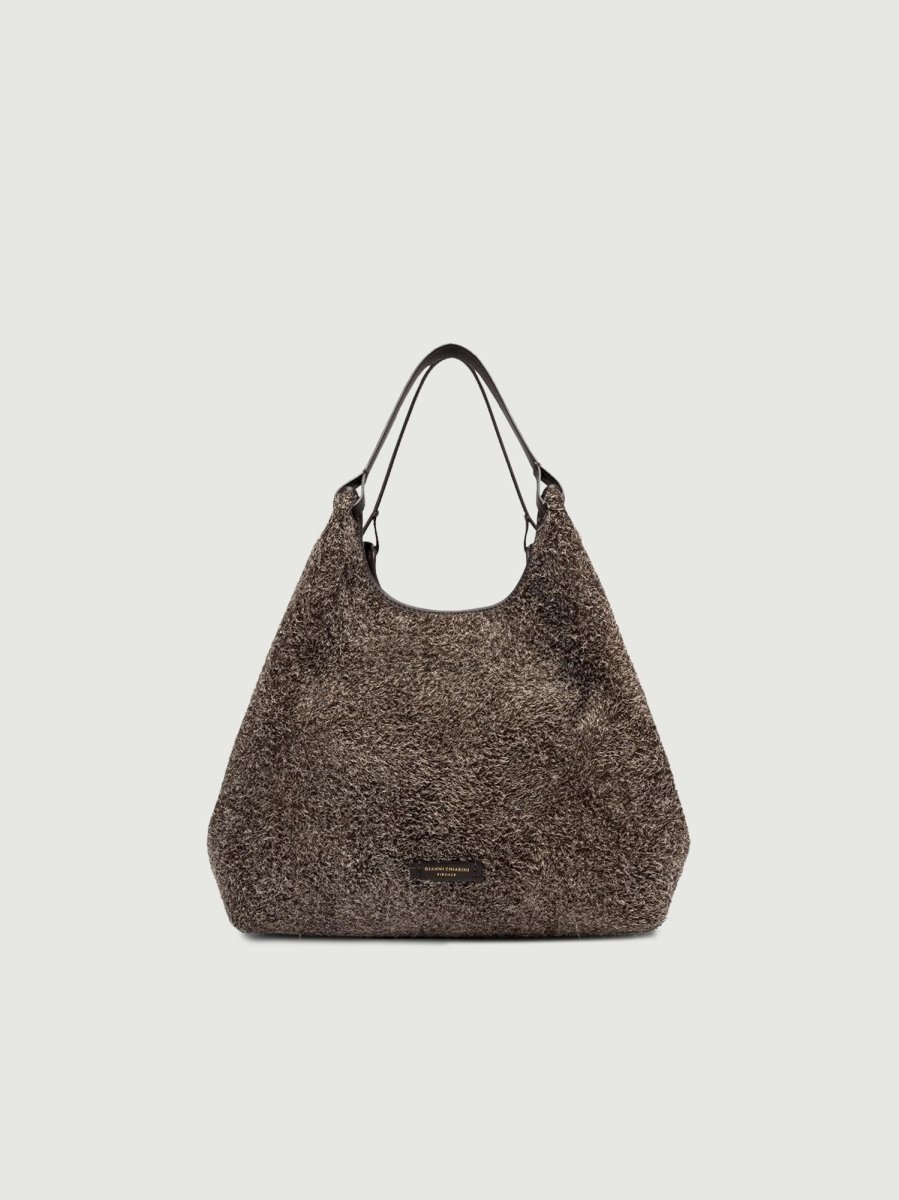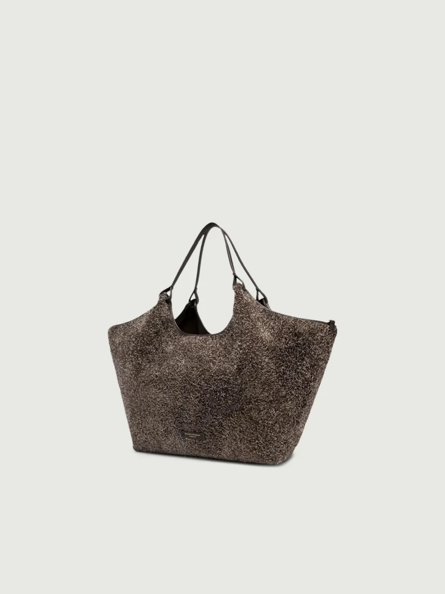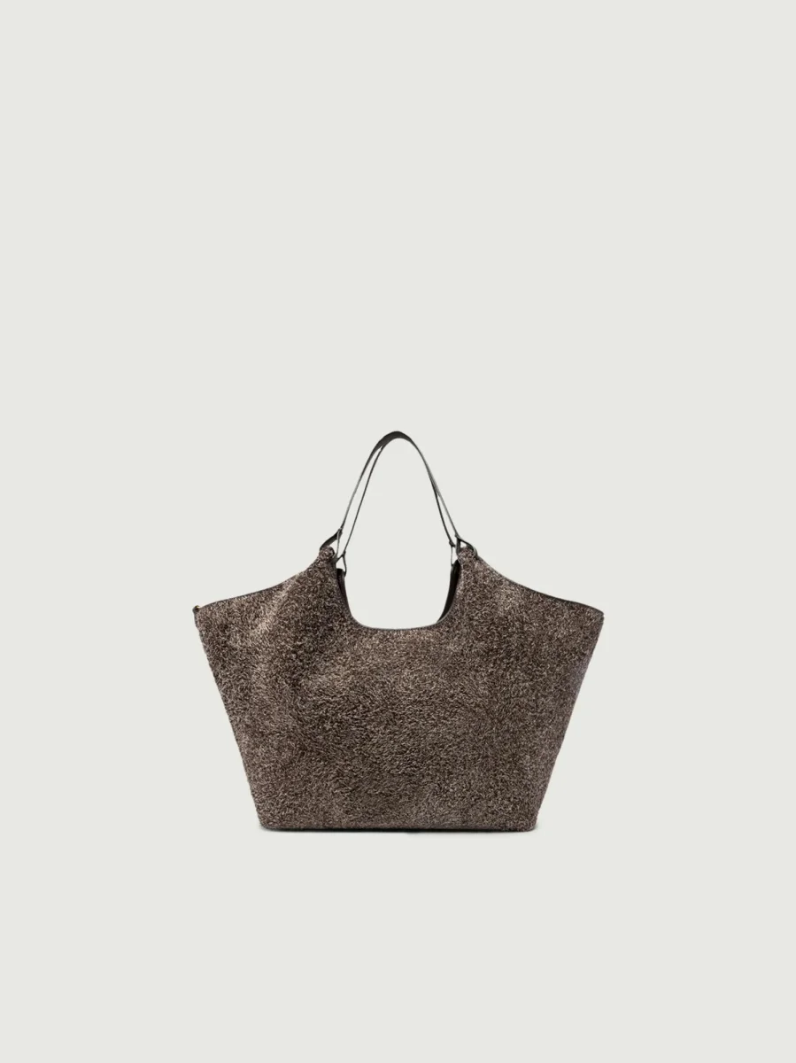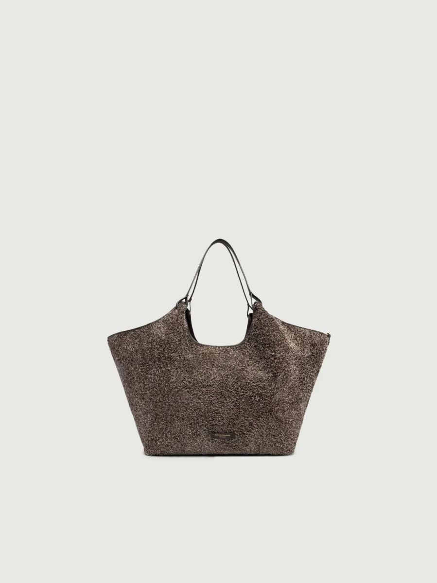 Borsa a spalla Dua in crosta di camoscio marrone.
