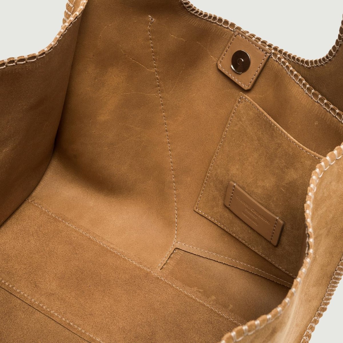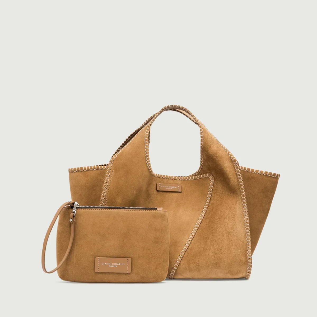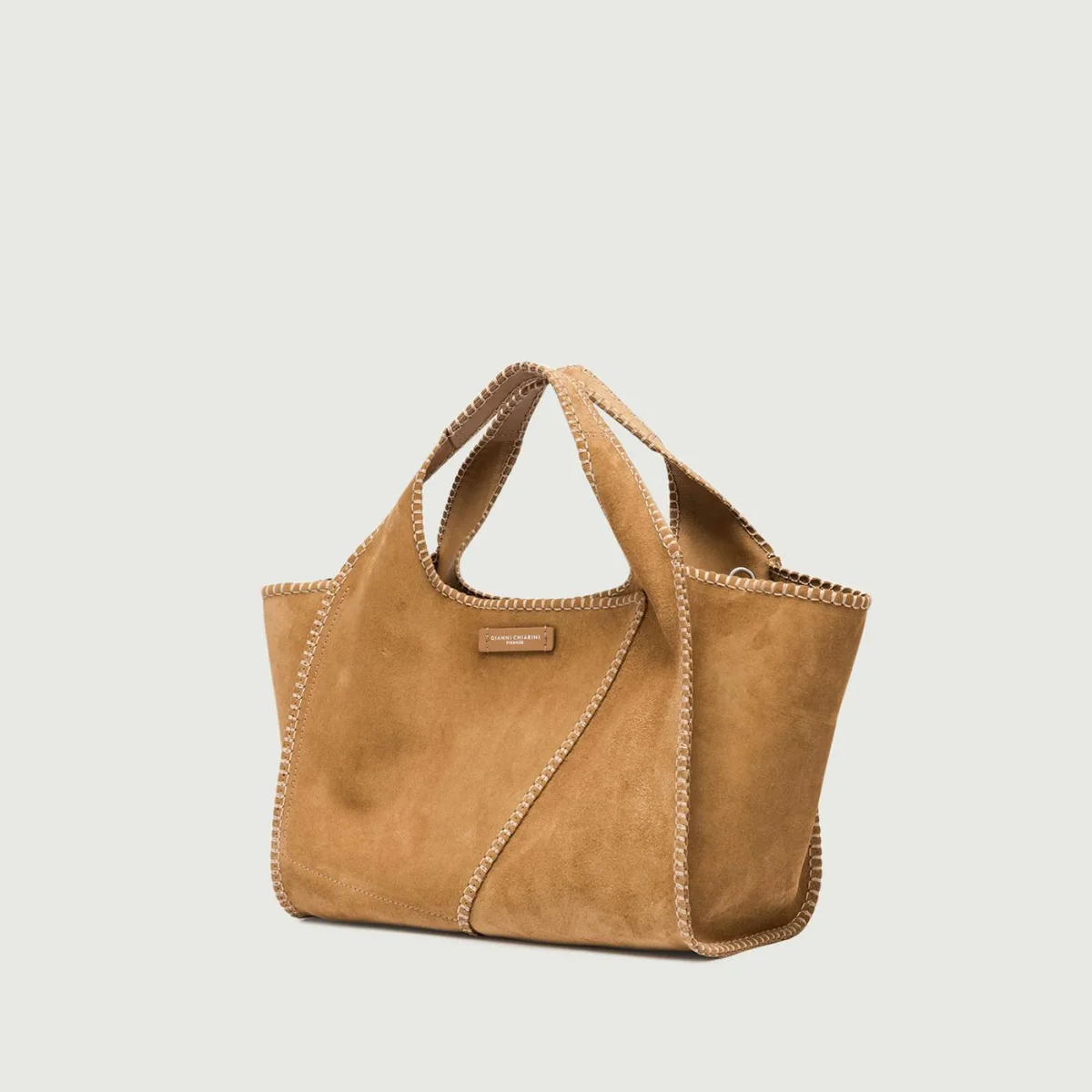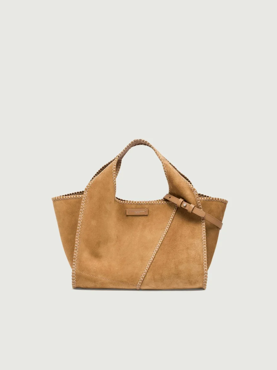 Euforia è l’iconica shopping bag sfoderata di Gianni Chiarini, realizzata in pelle scamosciata e caratterizzata da linee pulite. Chiusura con bottone a pressione. Dotata di una tracolla regolabile e removibile aggiuntiva per poterla indossare crossbody. Dimensioni: 28x18x2 cm.