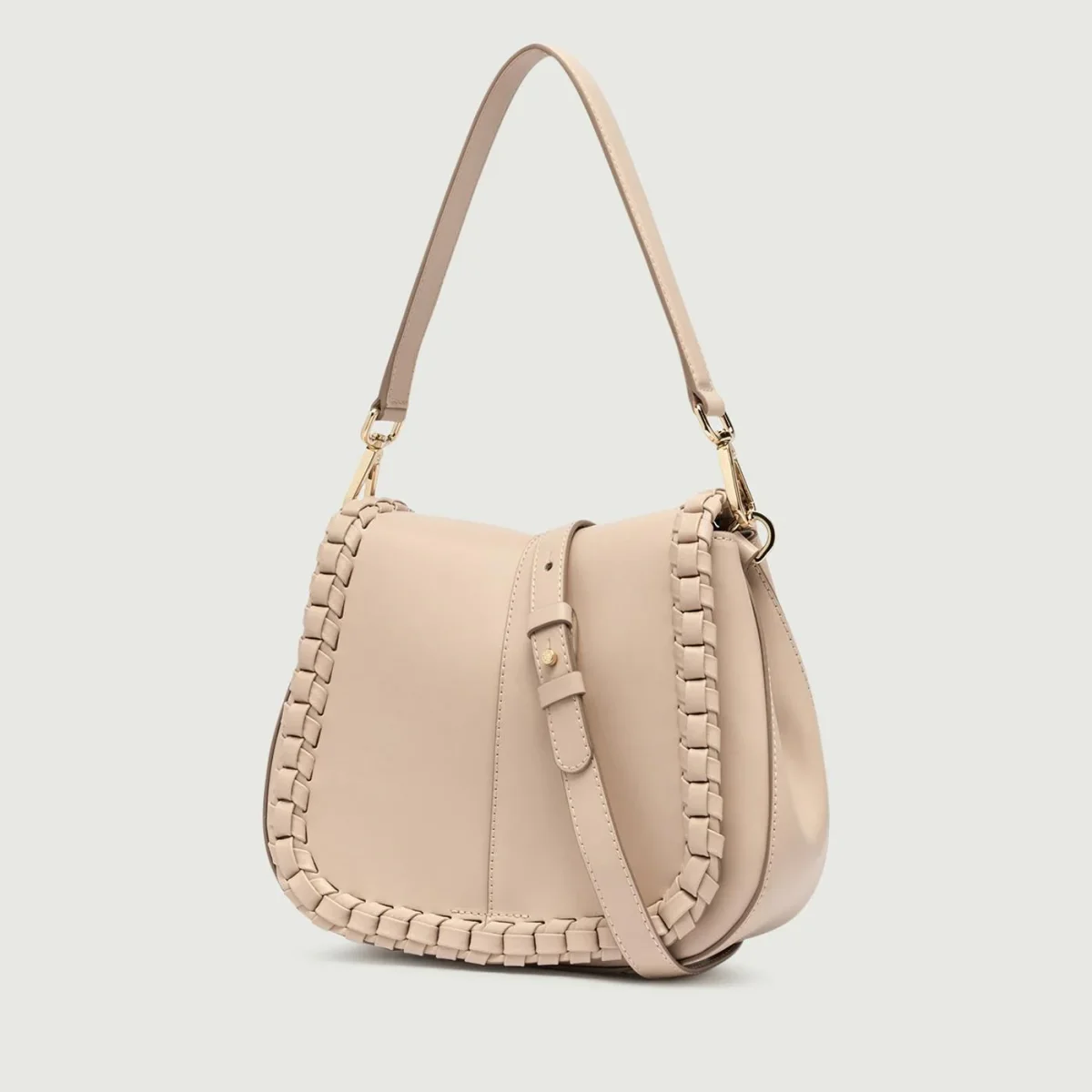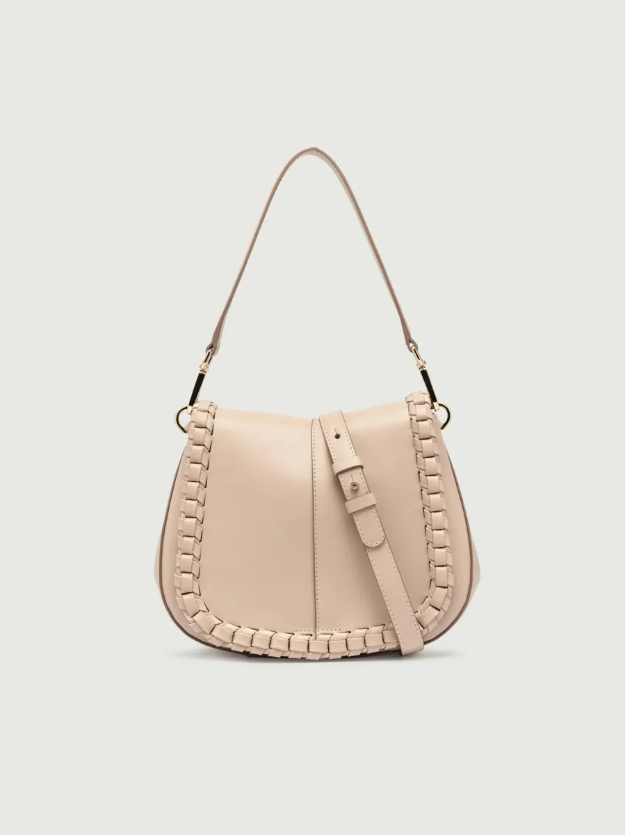 Borsa a spalla Helena Round special in pelle Cream