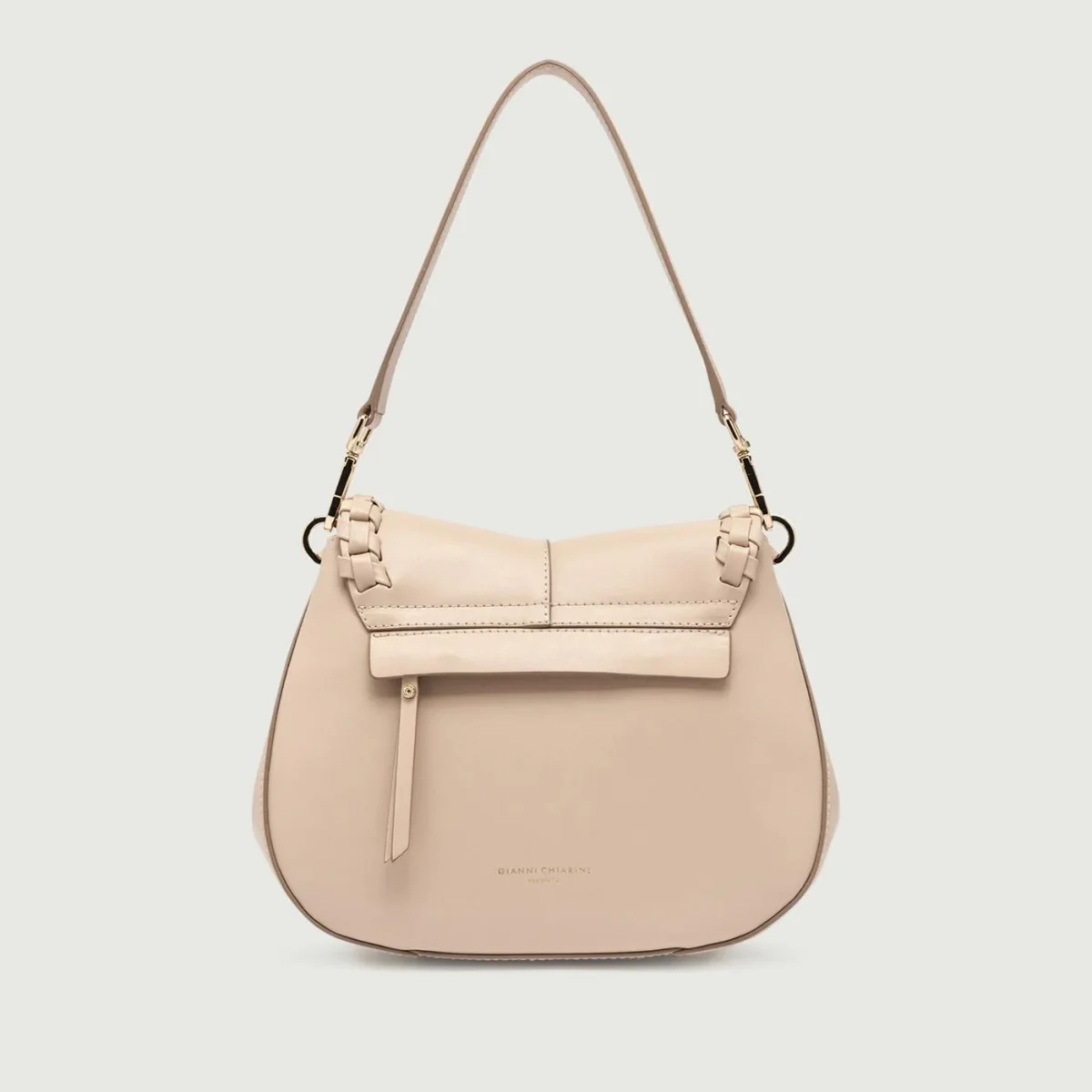 La borsa iconica Helena Round Special by Gianni Chiarini, realizzata in pelle liscia ed impreziosita da profili arricchiti da pelle intrecciata in tono, ha un design strutturato dall’appeal moderno e chic. Caratterizzata da un doppio compartimento interno con una tasca e dotata di una tasca a scomparsa anche nella parte posteriore della borsa. Elegante ma allo stesso tempo casual, presenta una tracolla regolabile ed un manico in pelle, entrambi removibili. Dimensioni: 26x21x9 cm.