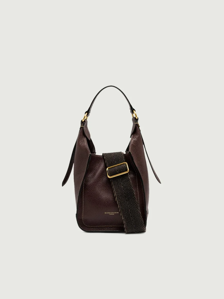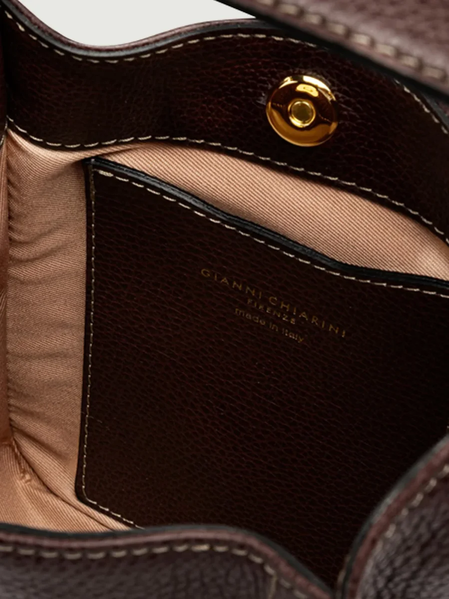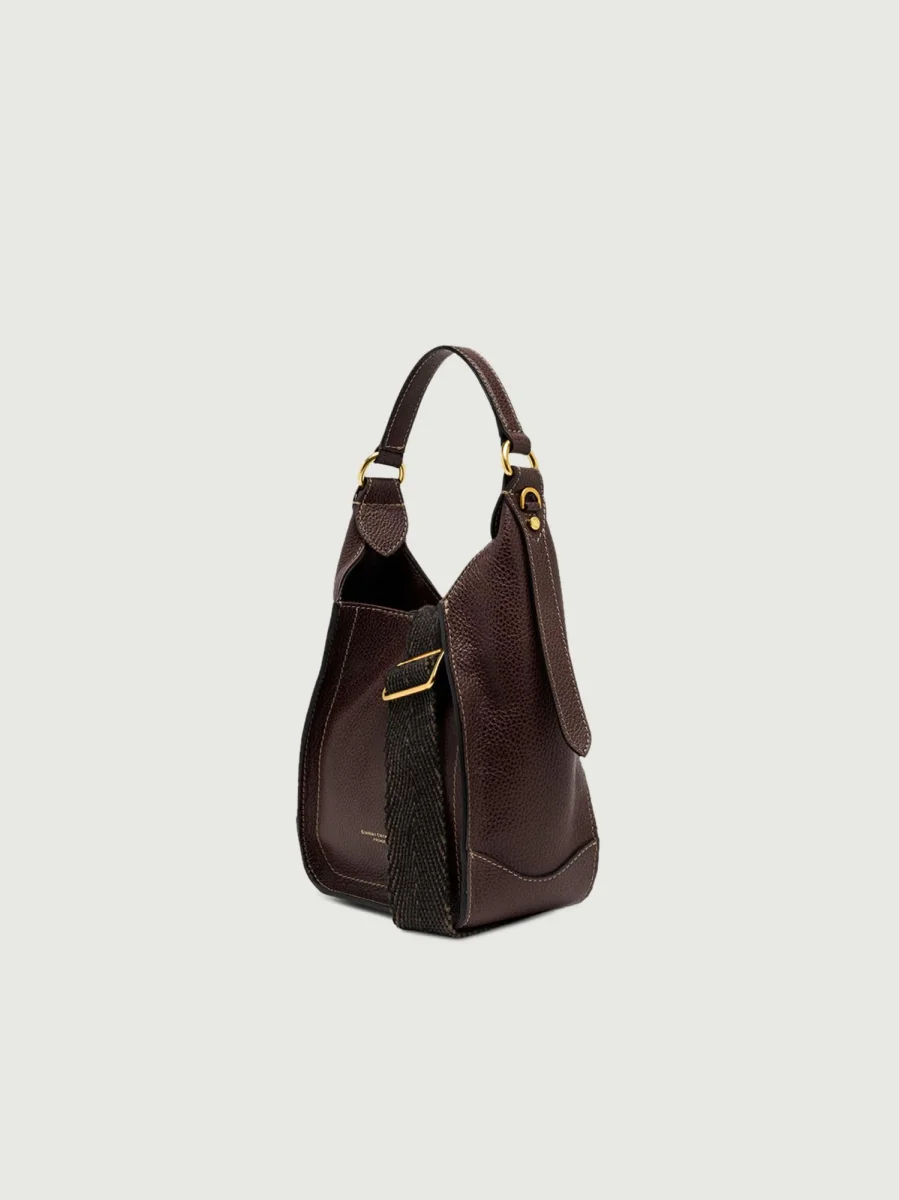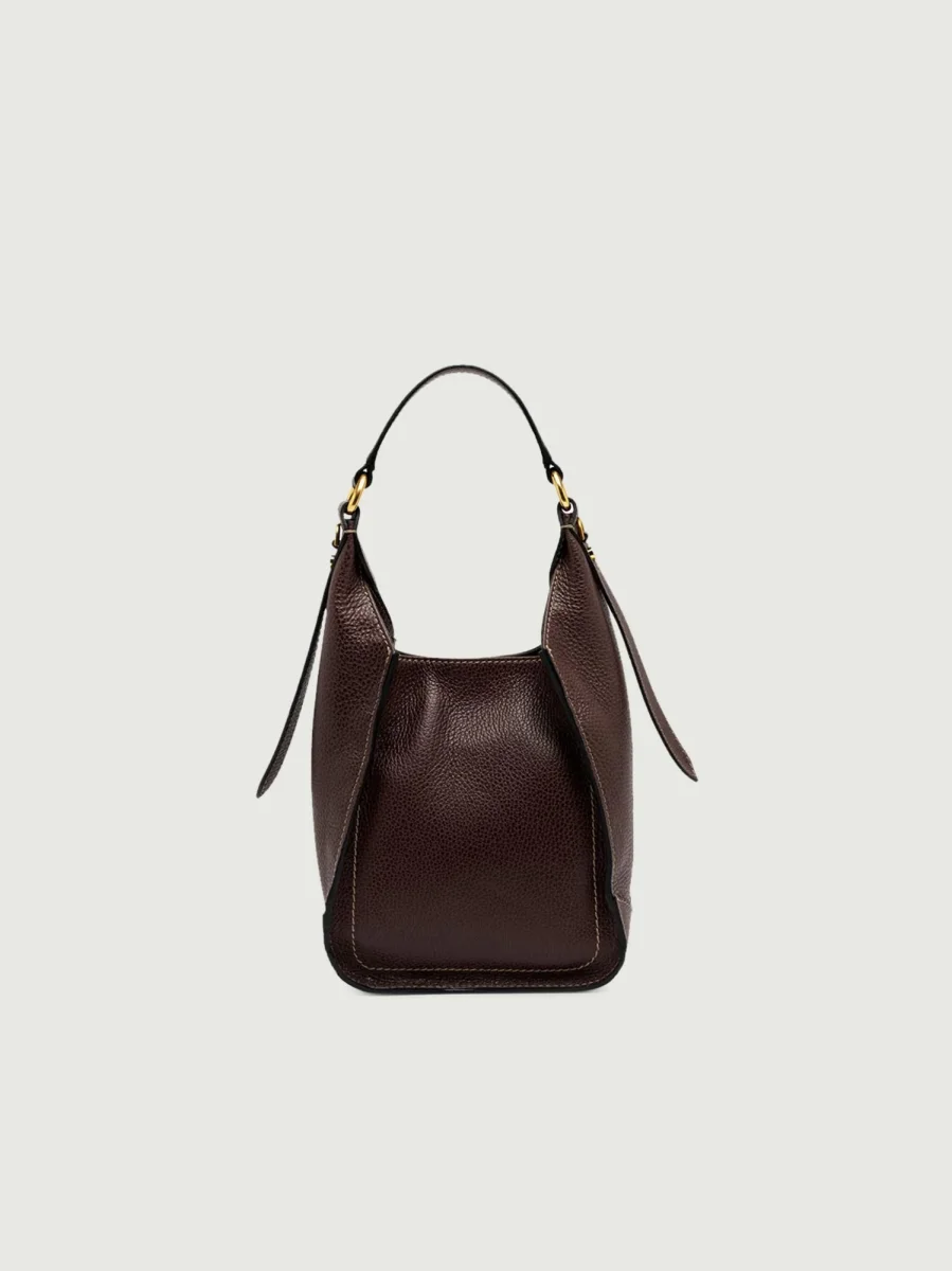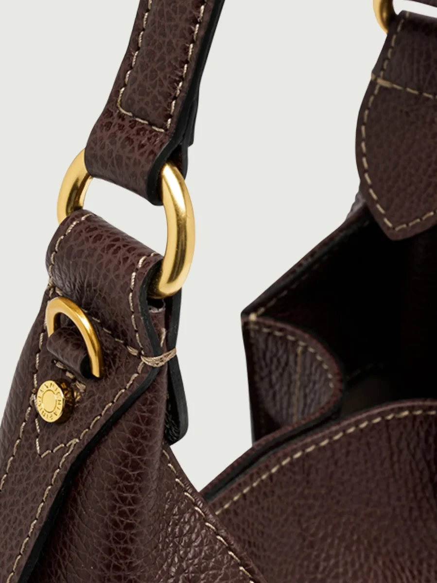 Borsa a spalla Olly in pelle martellata color marrone scuro.