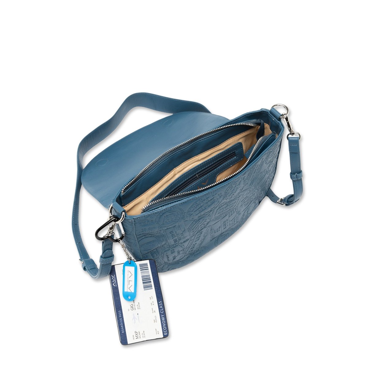 Realizzata con la distintiva stampa Passport tono su tono, simbolo dell’identità cosmopolita del brand, è impreziosita dal logo ALV in metallo argentato e dal caratteristico portachiavi con tag da viaggio coordinato.