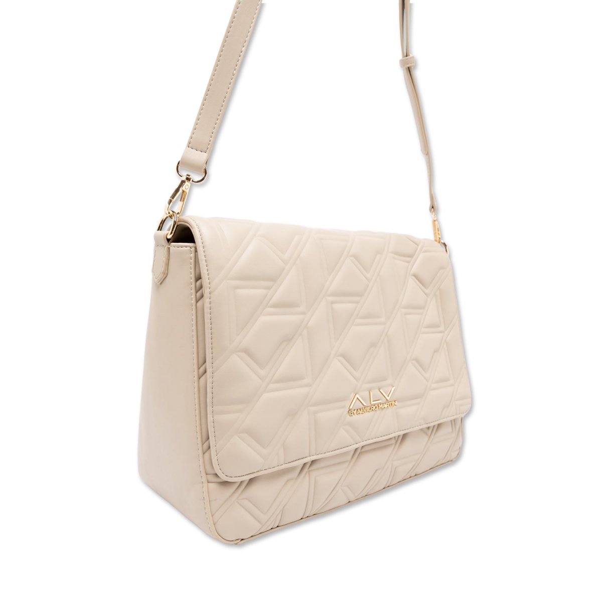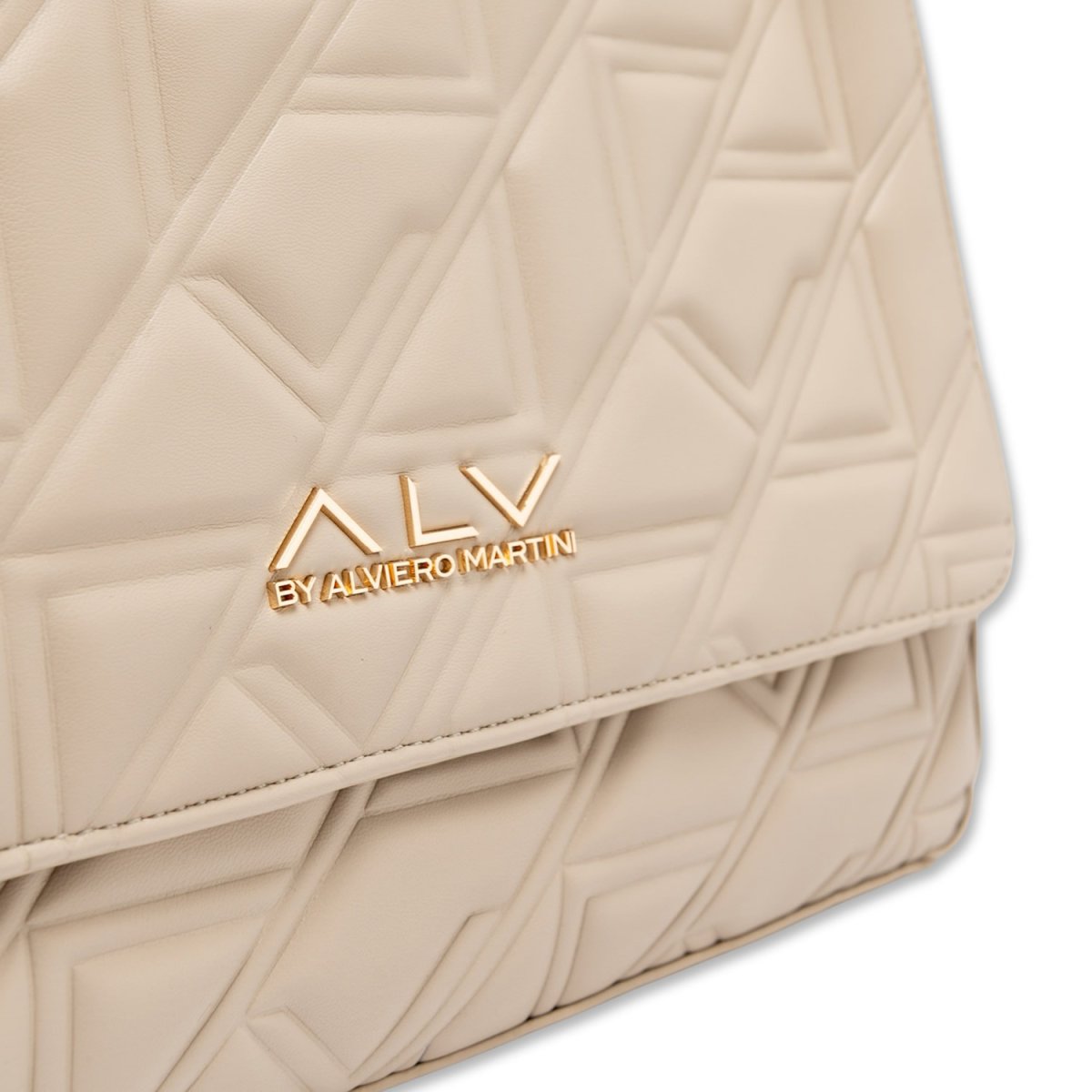 Caratterizzata dal motivo trapuntato geometrico con texture in rilievo e logo ALV in metallo dorato sul fronte, rappresenta l’unione perfetta tra design moderno e dettagli iconici del brand.