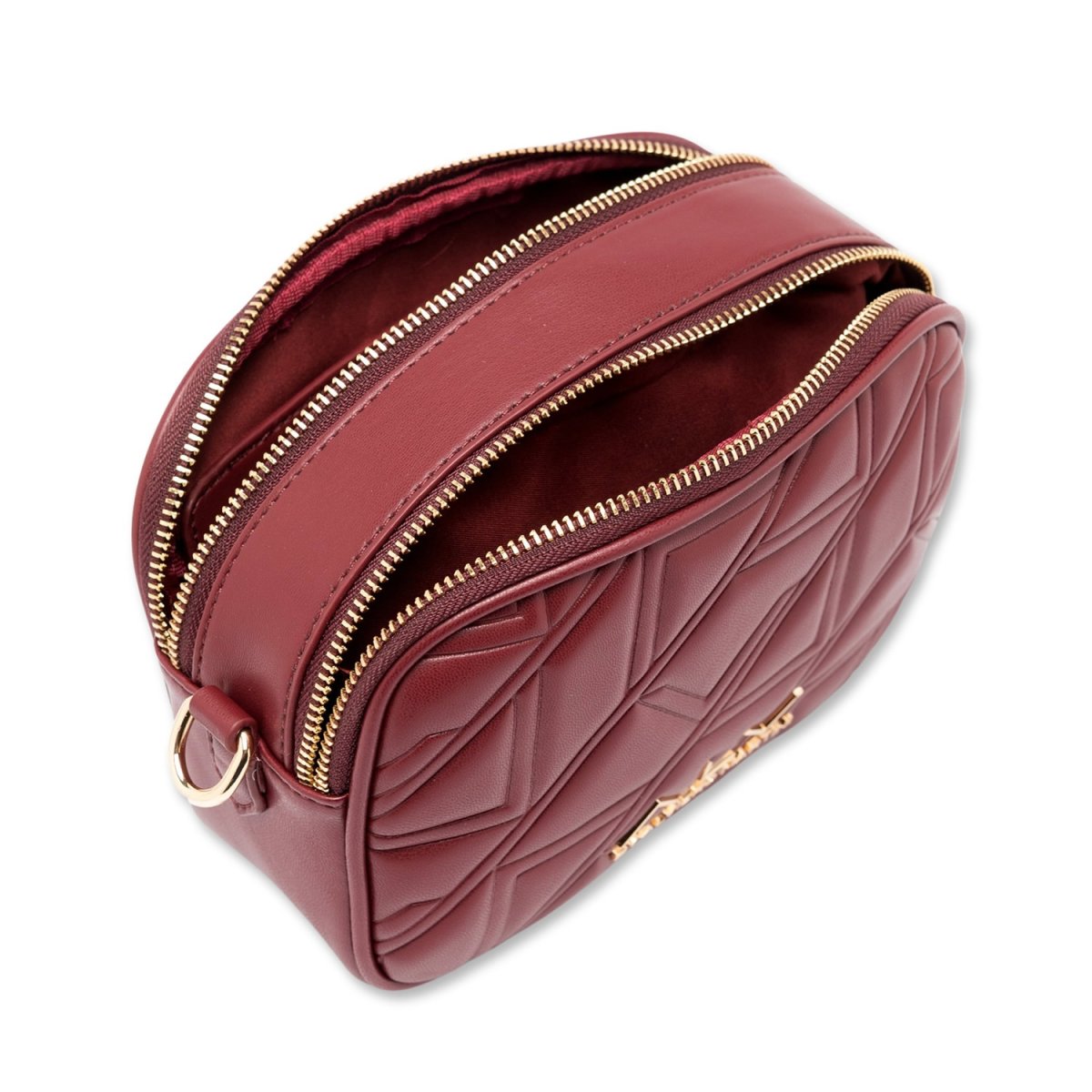 Realizzata in materiale trapuntato con motivo geometrico in rilievo, si distingue per la texture sofisticata e il logo ALV in metallo dorato applicato sul fronte.