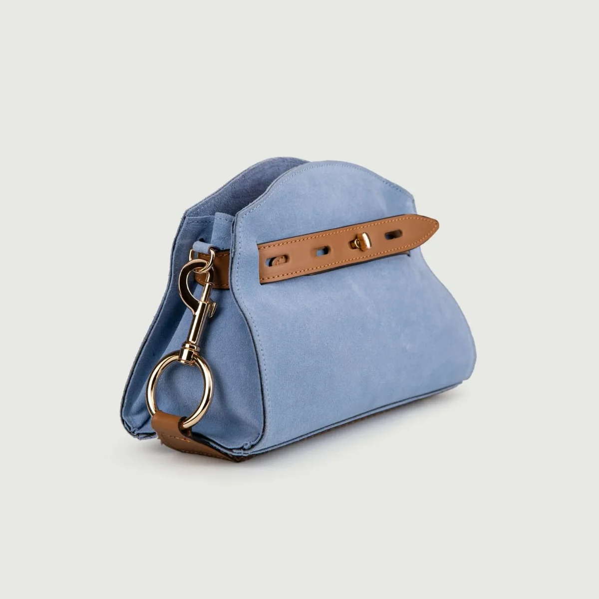 Borsa a tracolla in camoscio cuoio con inserti in pelle in tonalità “Soph”