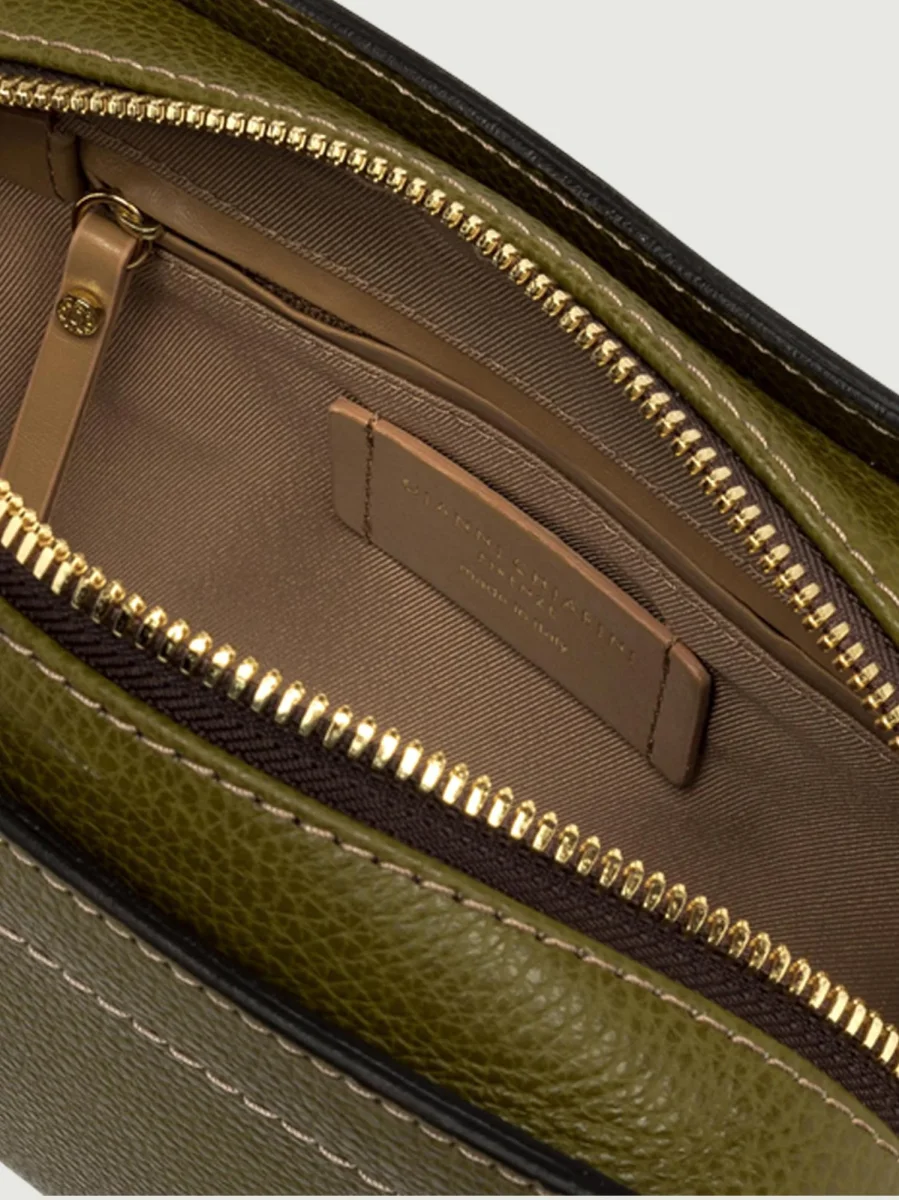 Borsa a tracolla Olly in pelle martellata color verde muschio.