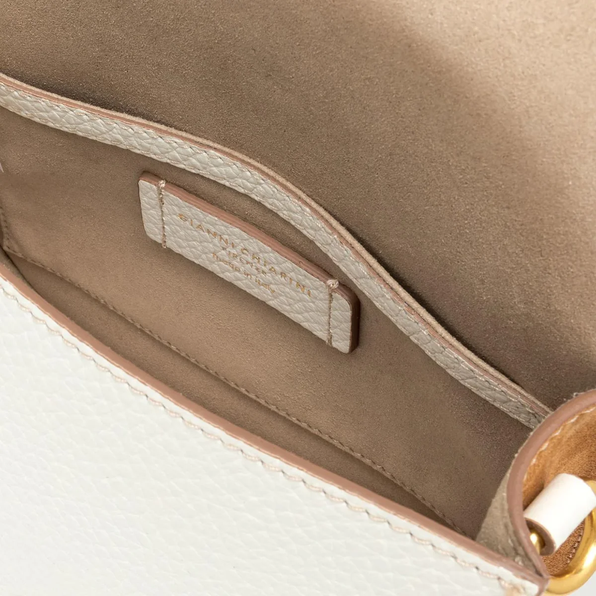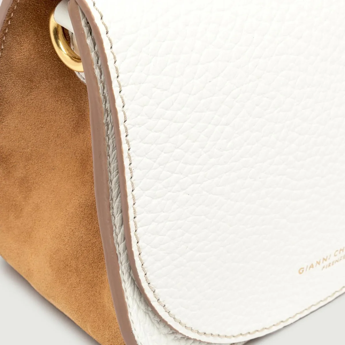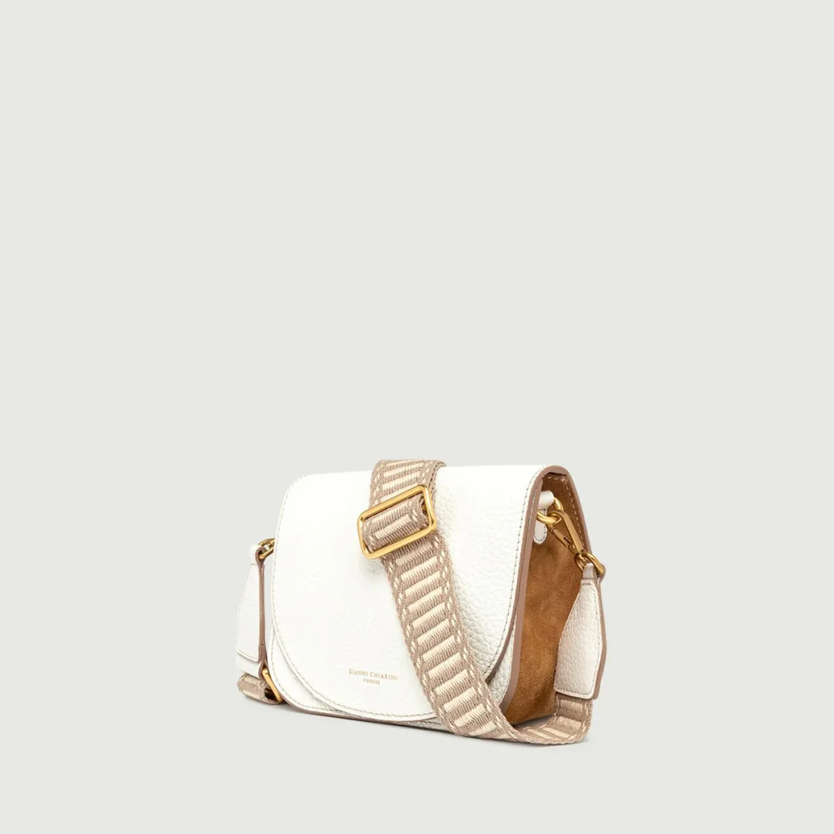 Tara by Gianni Chiarini è semplice ed elegante. Realizzata in due materiali a contrasto: il corpo frontale e posteriore in morbida pelle in grana maxi bianca, mentre i fianchi e il fondo in camoscio. La patta è dotata di una chiusura magnetica. Al suo interno, foderato in camoscio, troviamo una tasca piatta. E’ dotata di una tracolla in tessuto a spiga. Dimensioni: 22x16x10 cm