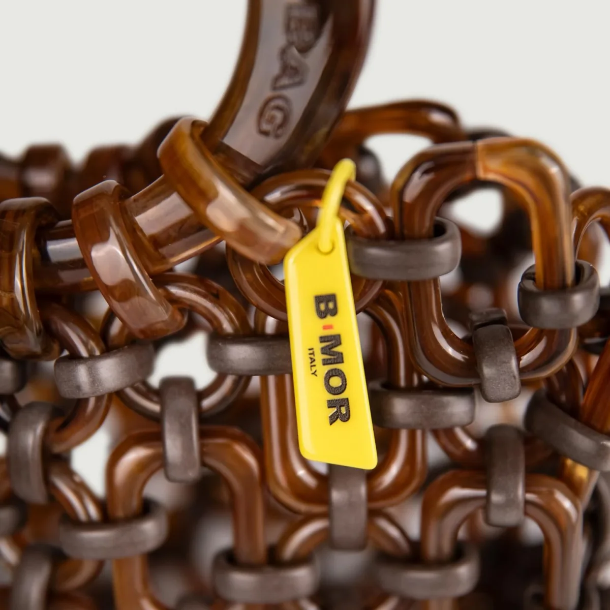 Questo modello fa parte della nuova “Playfinity collection” firmata BiMOR ITALY: un gruppo di accessori in resina assemblati a mano in italia attraverso la tecnica del “ringlink”. Tutte le componenti di questo design sono realizzate da una start up certificata eco firendly che utilizza solo macchinari elettrici e non produce scarti.