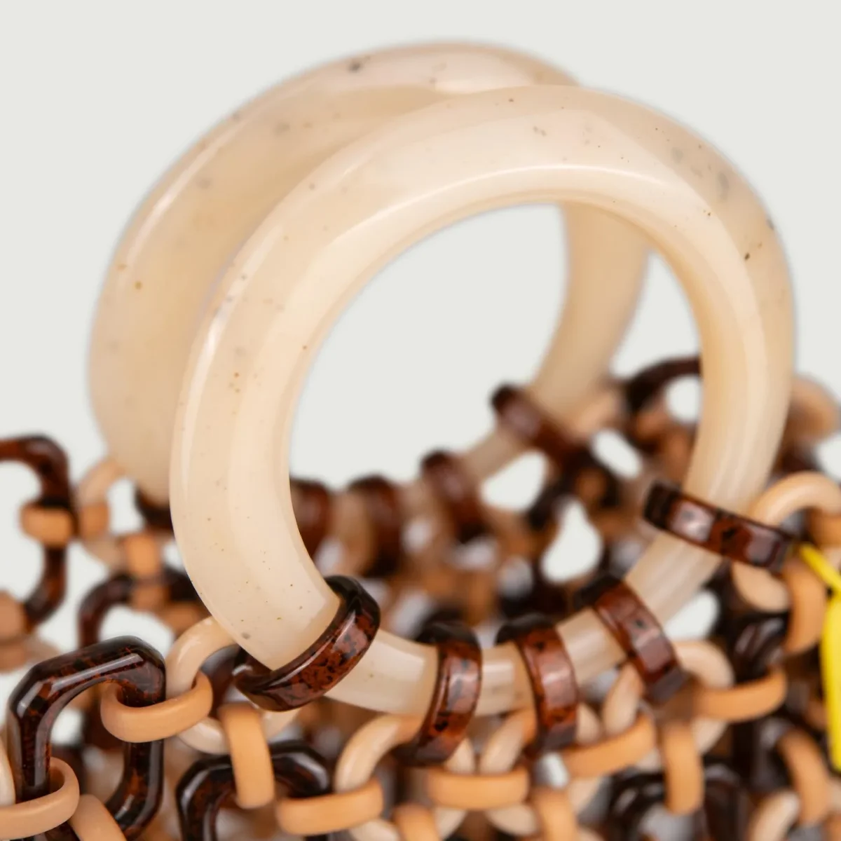 Questa borsa è stata assemblata a mano in italia utilizzando la tecnica “ringlink”.