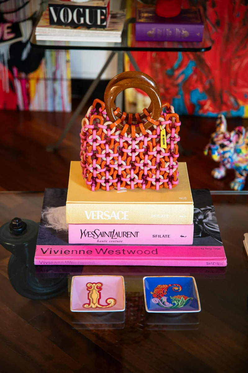 Borsa con manici in resina multicolor fucsia “Doll”