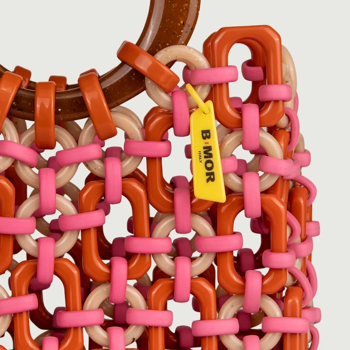 Questo modello fa parte della nuova “Playfinity collection” firmata BiMOR ITALY: un gruppo di accessori in resina assemblati a mano in italia attraverso la tecnica del “ringlink”. Tutte le componenti di questo design sono realizzate da una start up certificata eco friendly che utilizza solo macchinari elettrici e non produce scarti.