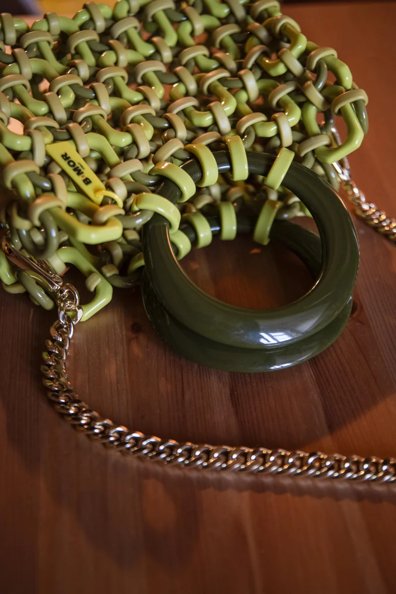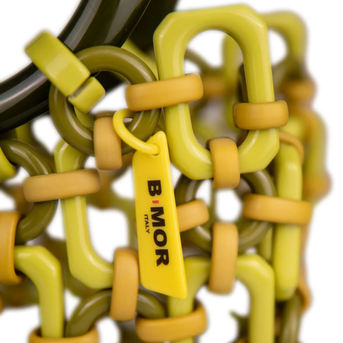 Questo modello fa parte della nuova “Playfinity collection” firmata BiMOR ITALY: un gruppo di accessori in resina assemblati a mano in italia attraverso la tecnica del “ringlink”. Tutte le componenti di questo design sono realizzate da una start up certificata eco friendly che utilizza solo macchinari elettrici e non produce scarti.
