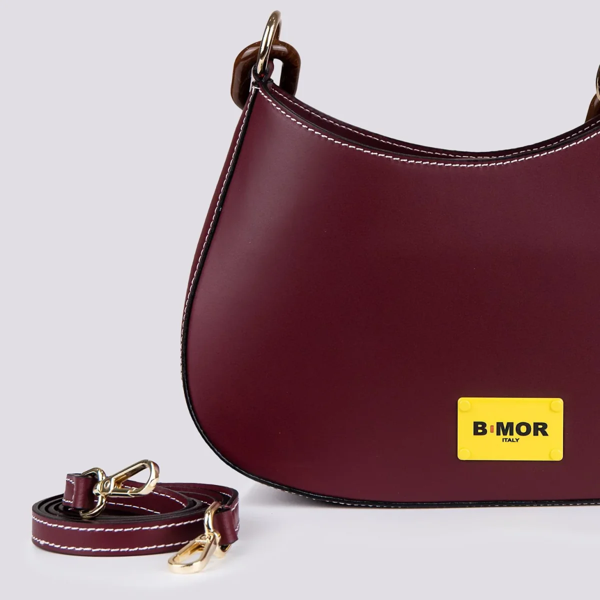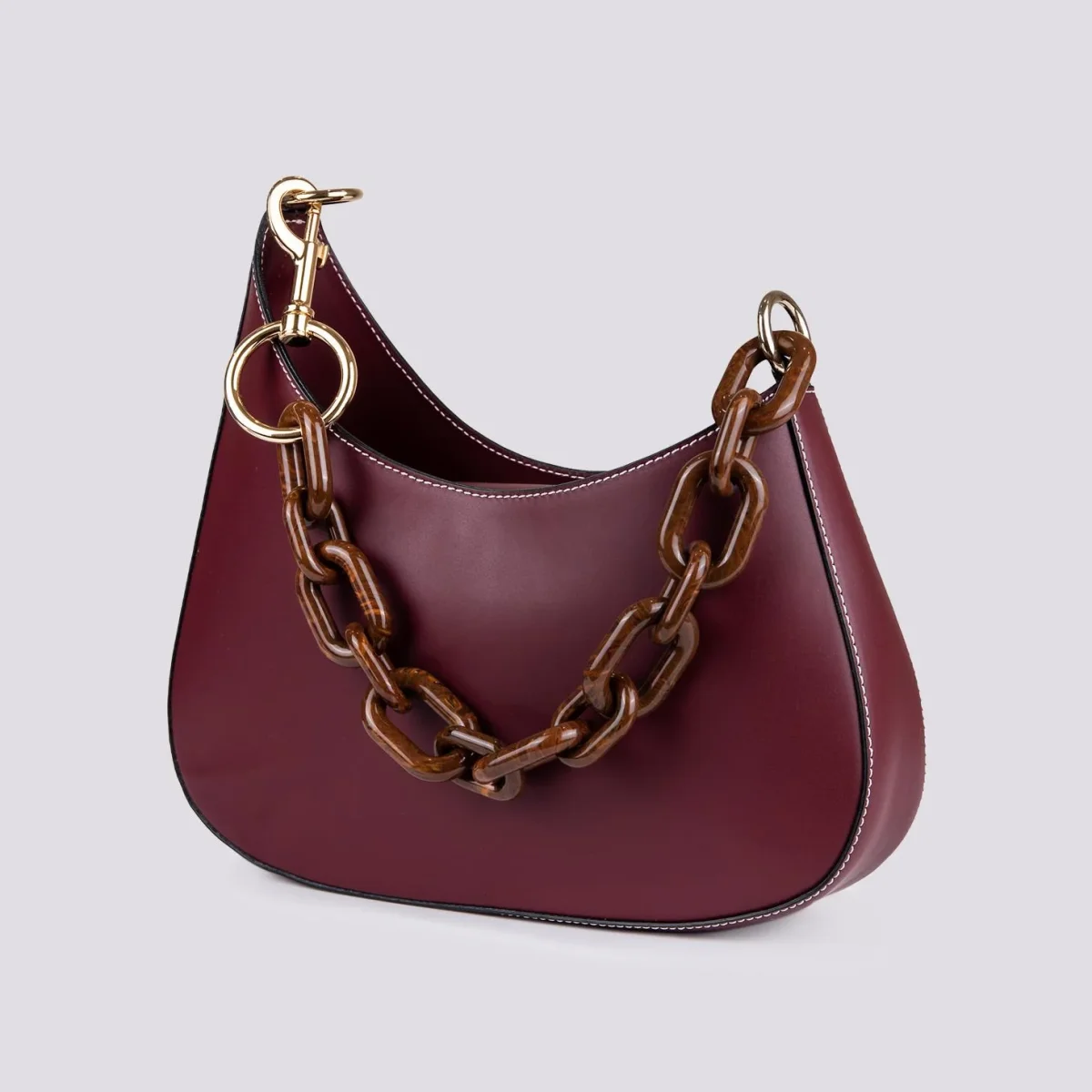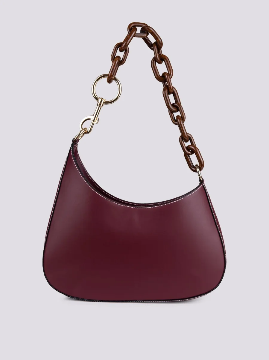 BORSA IN PELLE bordeaux CON TRACOLLA IN OSSO “CURVY”