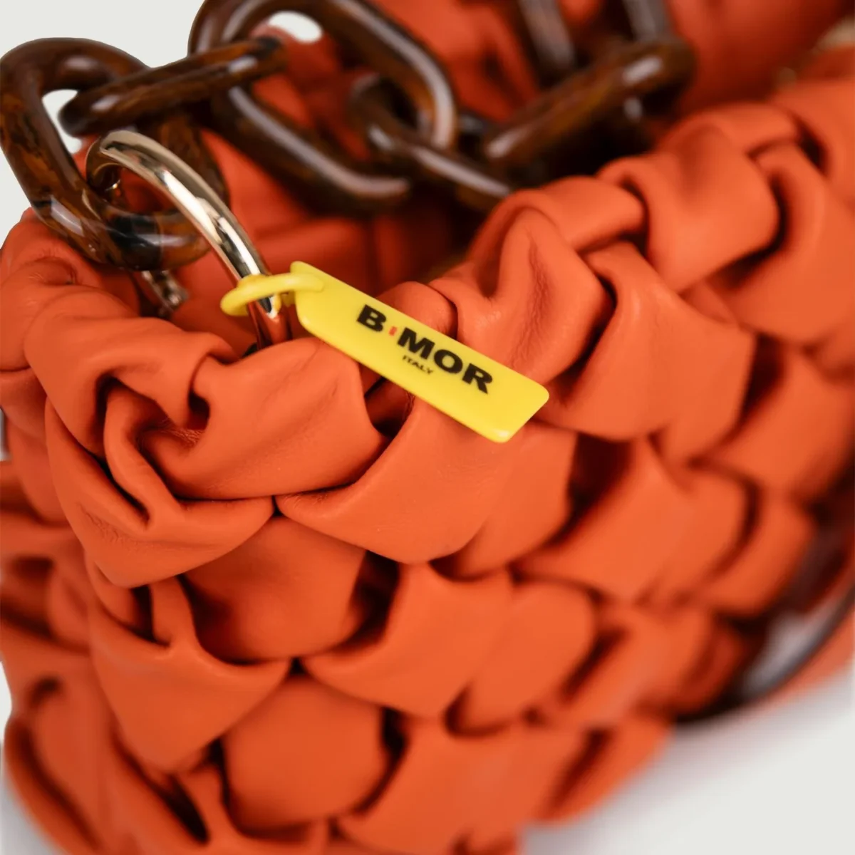 Borsa in morbida pelle intrecciata arancione “Curly”