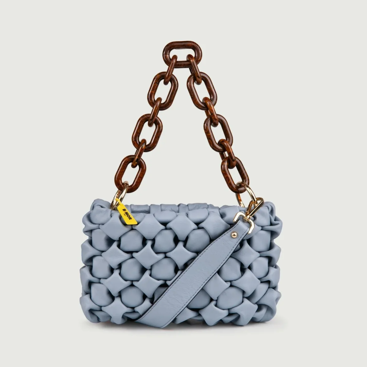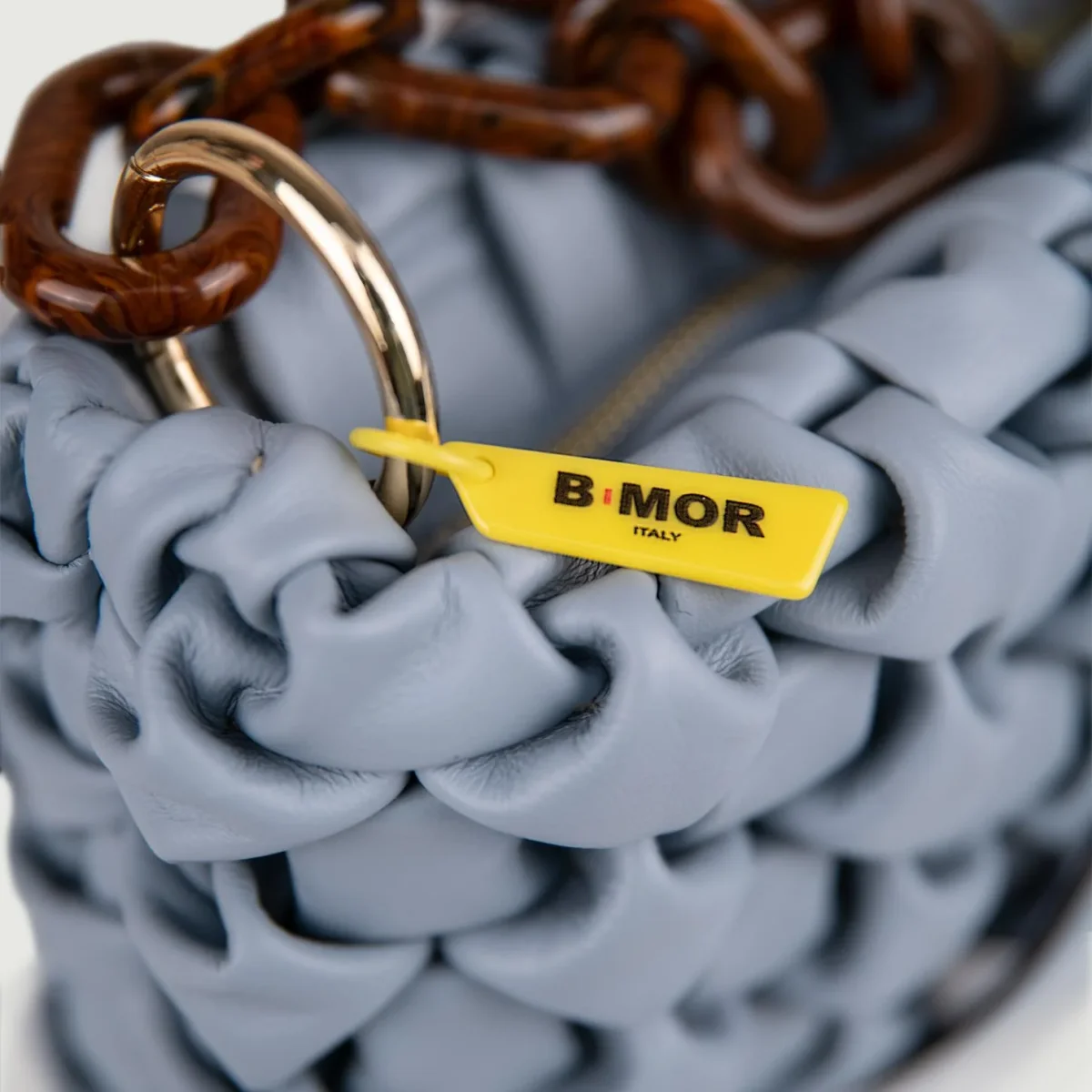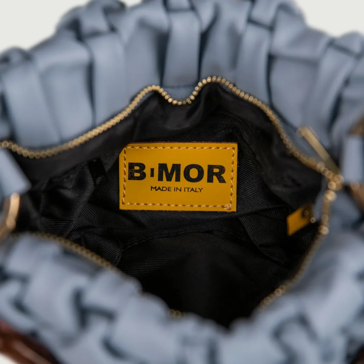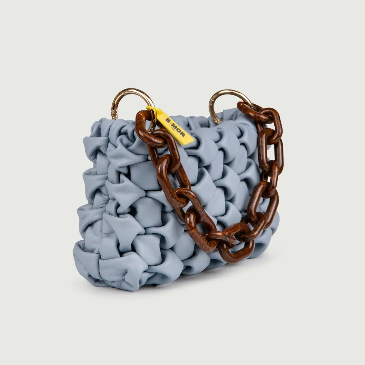 Borsa in morbida pelle intrecciata azzurra carta zucchero “Curly”