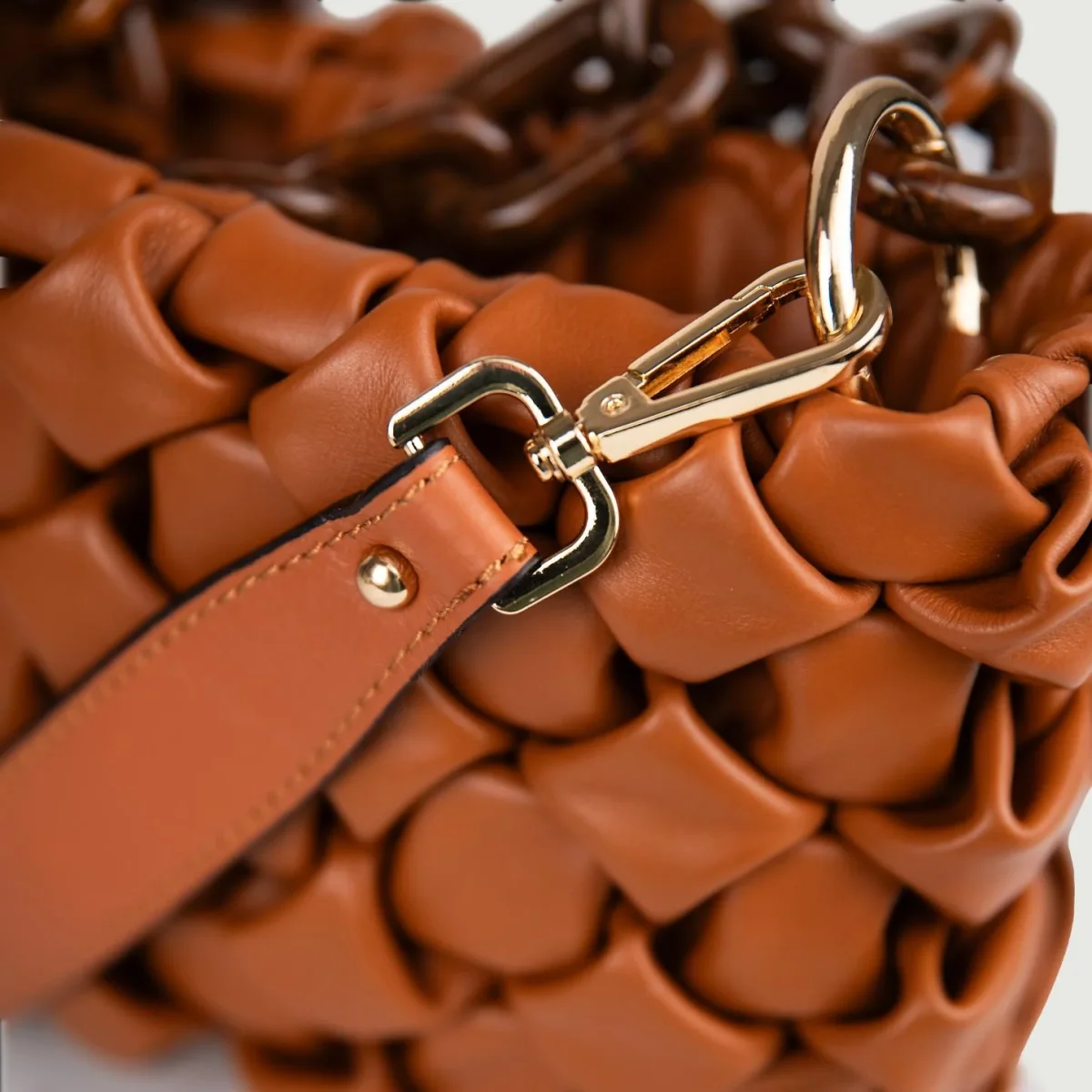 Borsa in morbida pelle intrecciata cuoio “Curly”