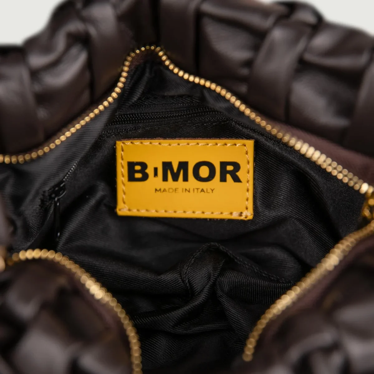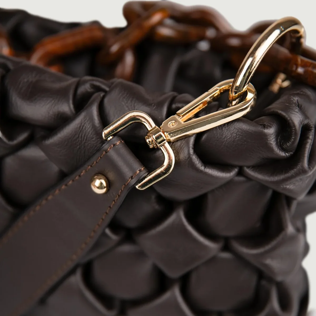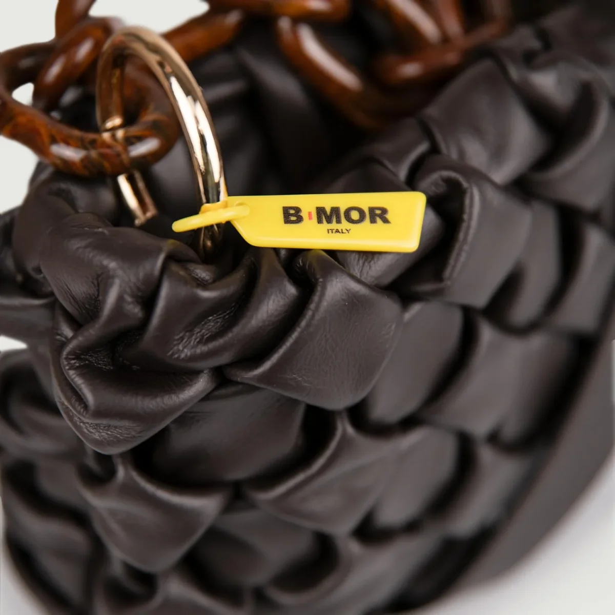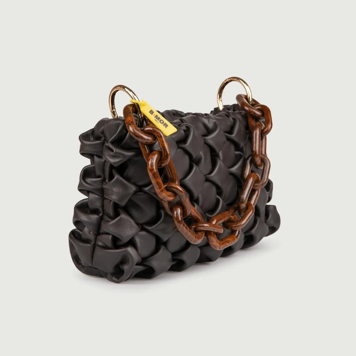 Borsa in morbida pelle intrecciata color testa moro “Curly”