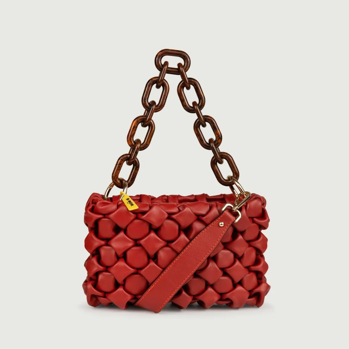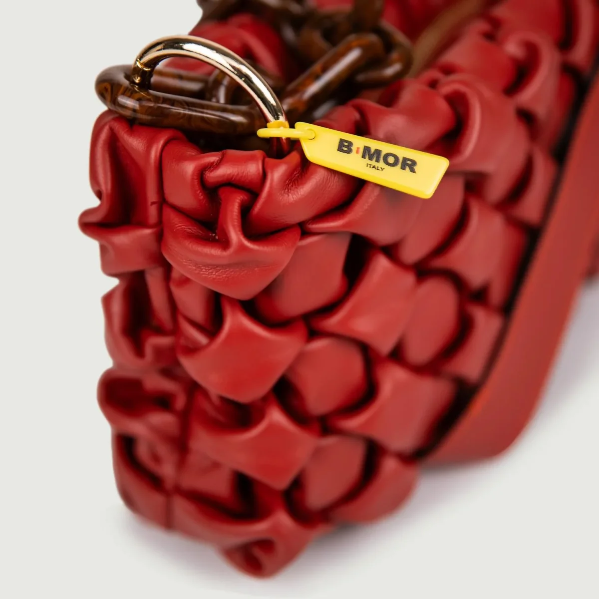 Borsa in morbida pelle intrecciata color mattone “Curly”