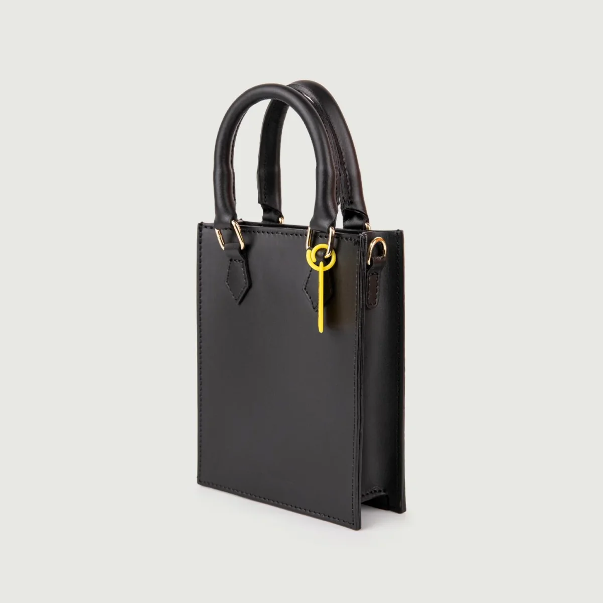 Borsa a mano squadrata con manici e tracolla.