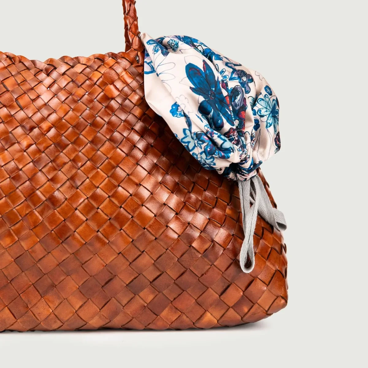 Manici tubolar i in pelle intrecciata in tonalità.