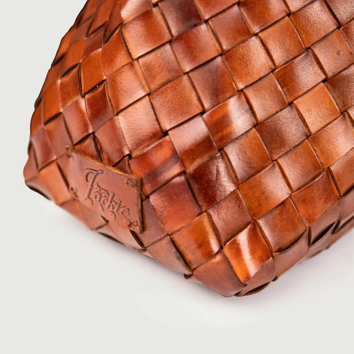 Borsa shopper in pelle intrecciata marrone.