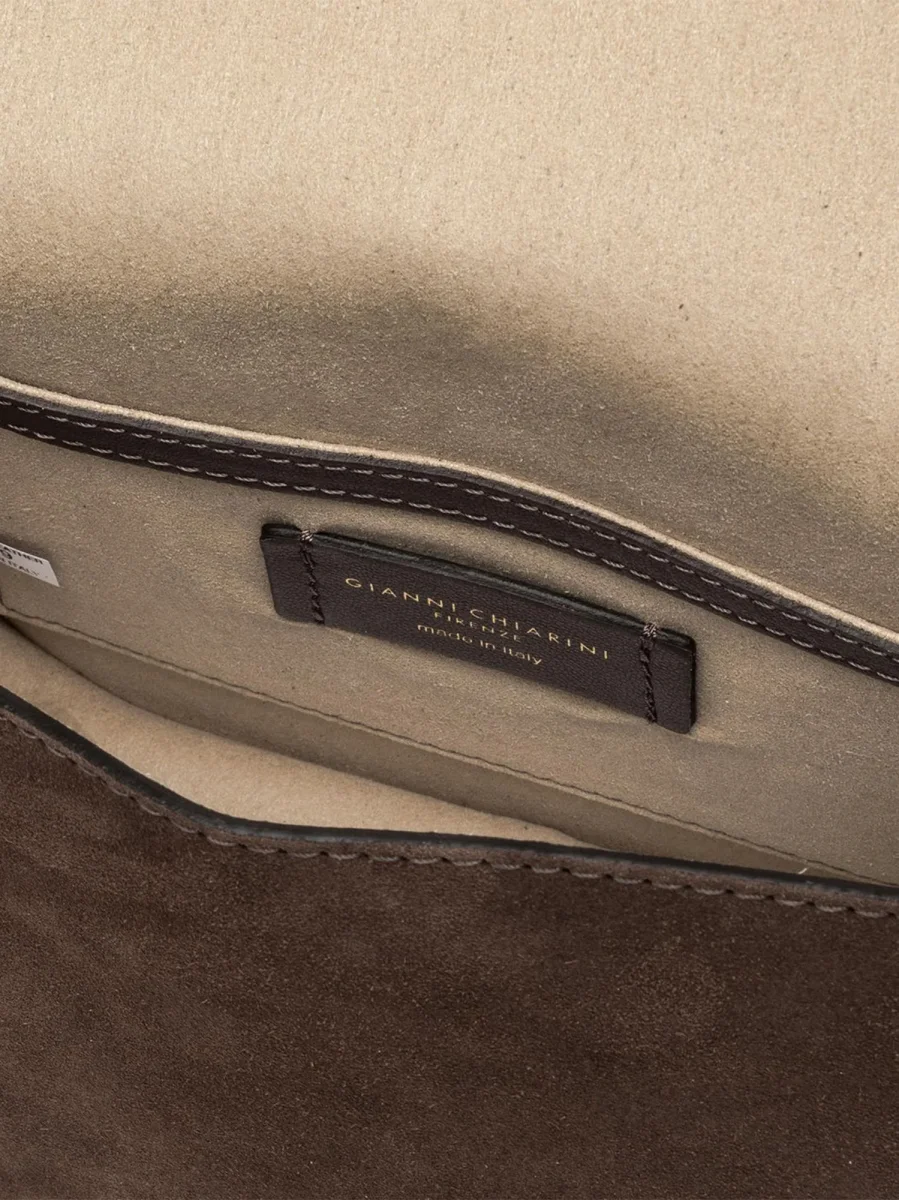 Borsa Tara in light suede color marrone cioccolato.