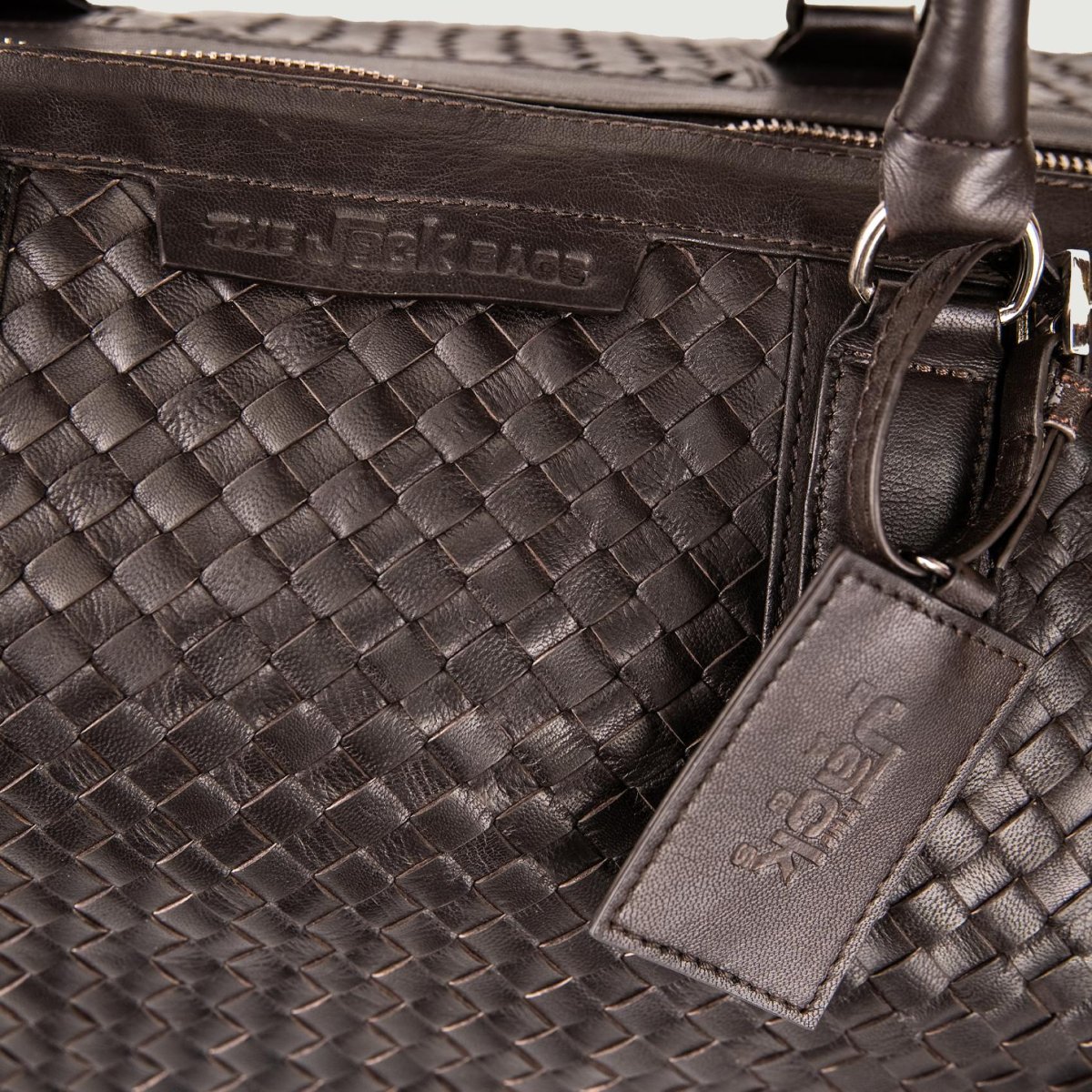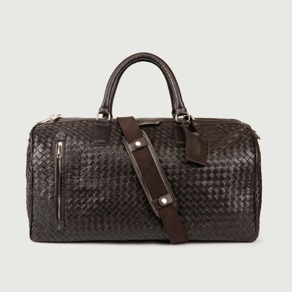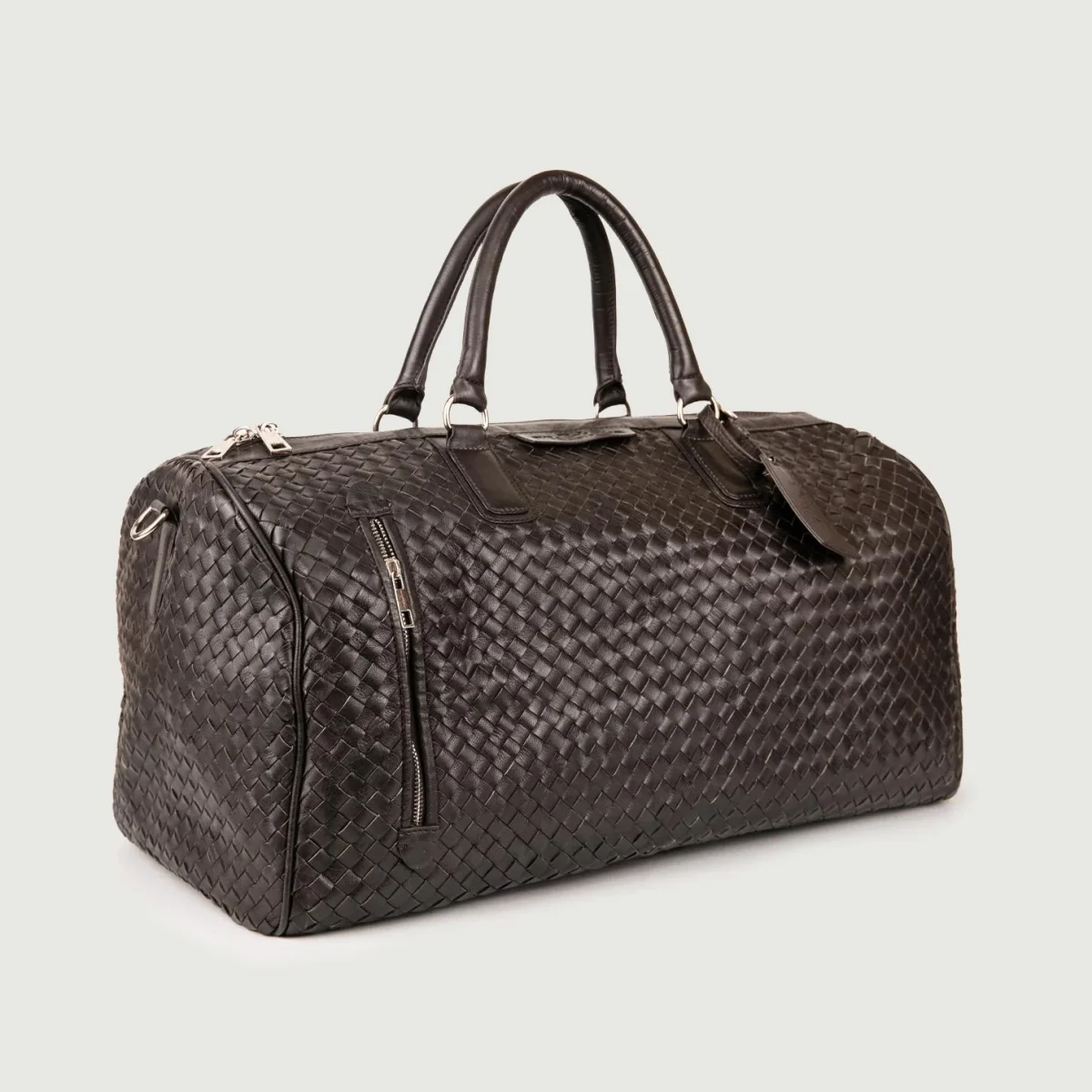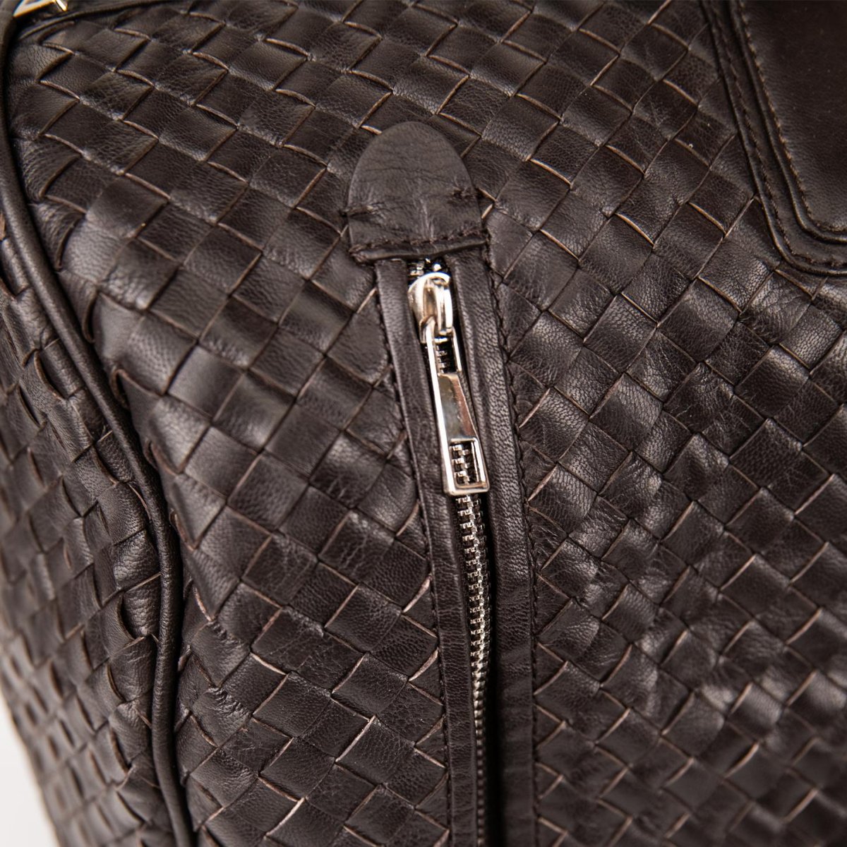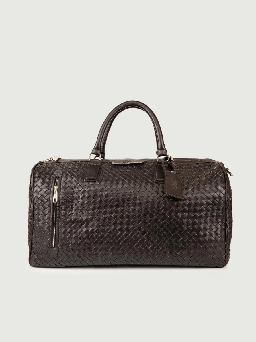 Borsone in pelle intrecciata dark brown.Composizione: Pelle