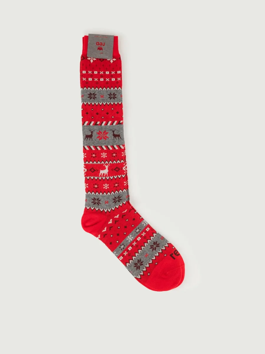 Calza lunga da uomo in caldo cotone con disegno norvegese a tema natalizio, dai colori blu vega, grigio,bianco e blu elettrico.