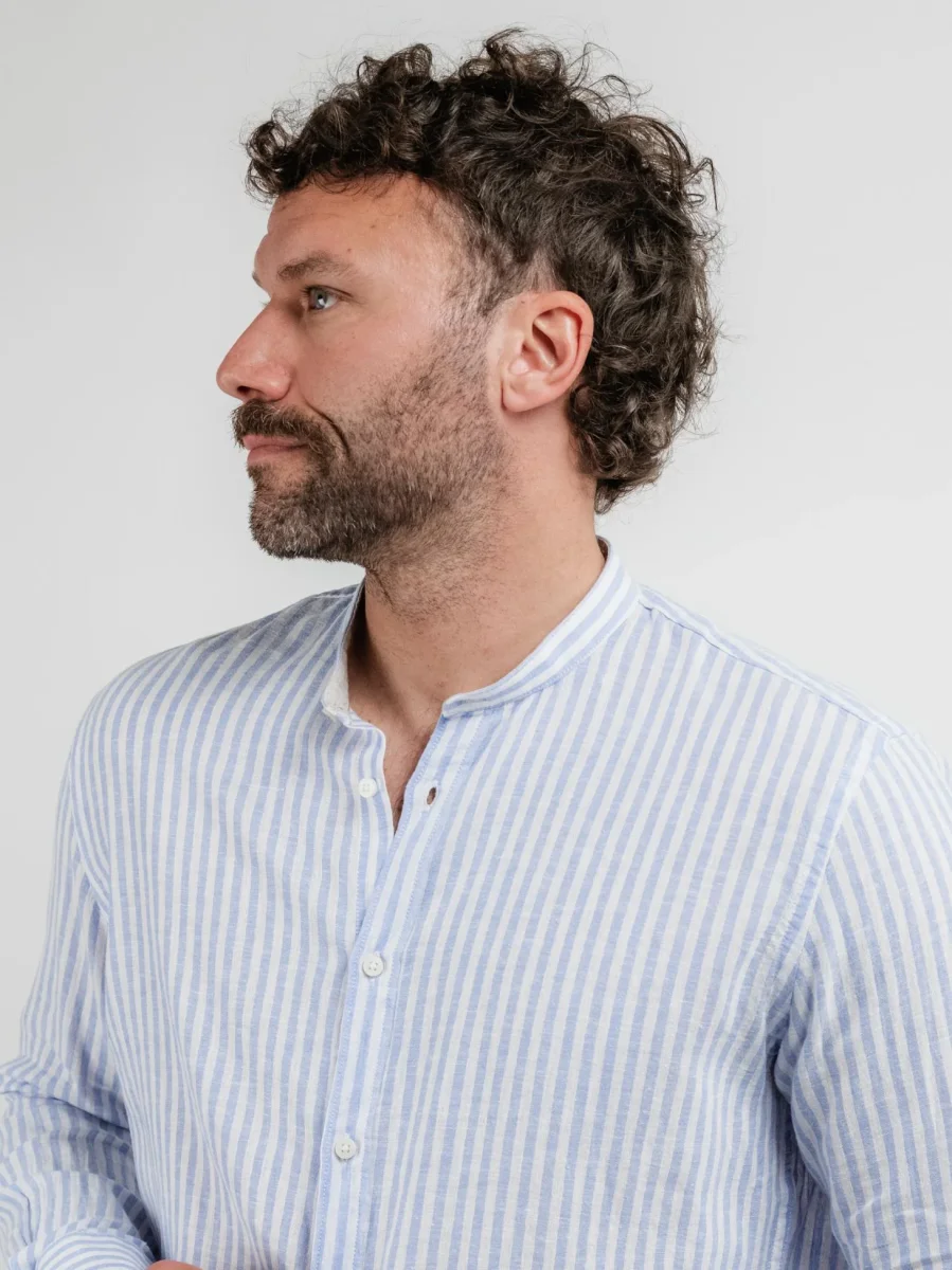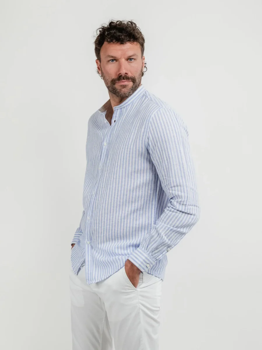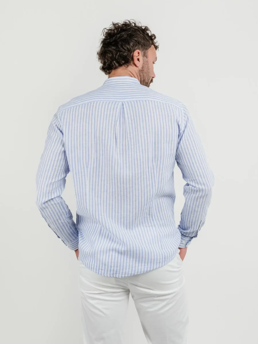 Camicia mistolino a righe bianche e azzurre.