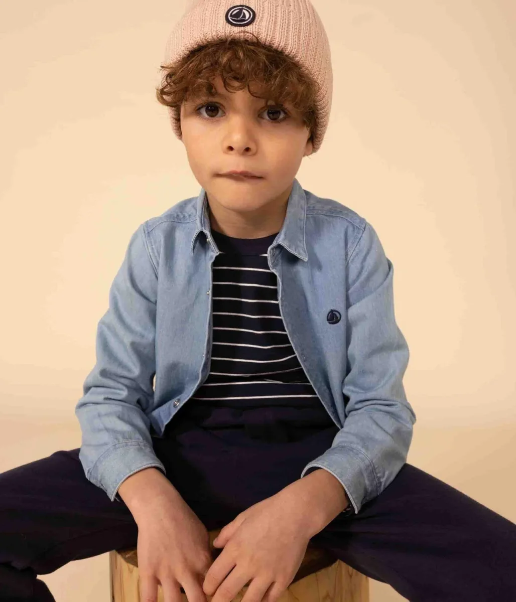 Camicia a maniche lunghe in 100% denim di cotone leggero e confortevole.