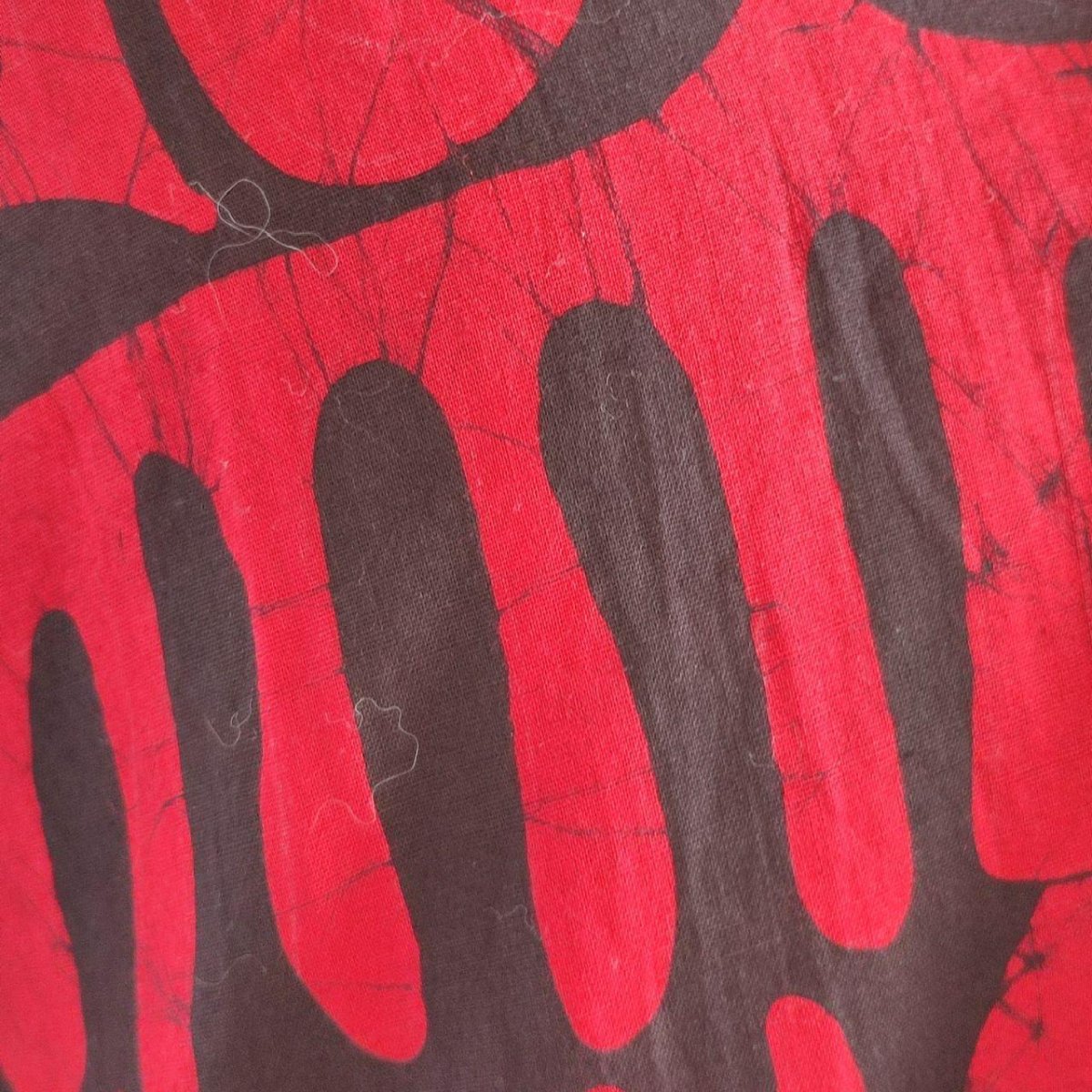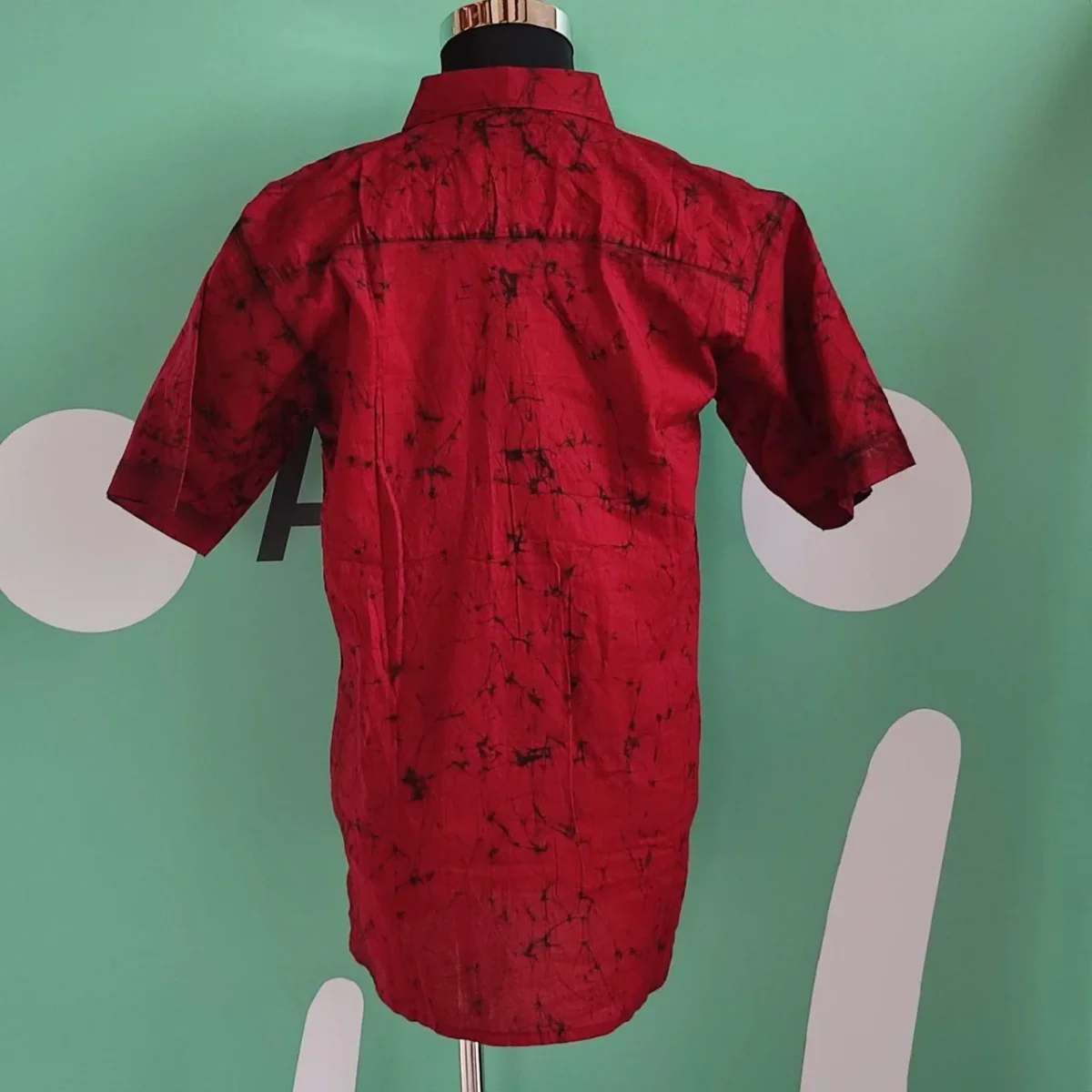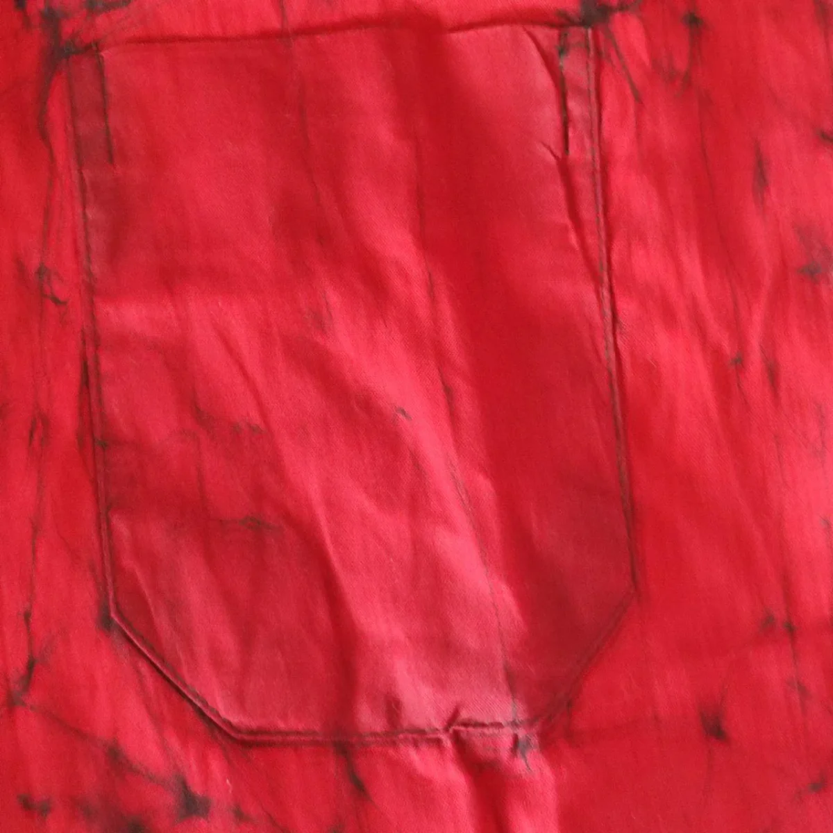 Camicia in ottime condizioni, senza nessun particolare difetto. Si presenta di colore rosso, con una grafica tribale sulla parte sinistra. La composizione del tessuto non è presente, ma si direbbe cotone o al massimo un misto cotone e poliestere. Taglia XL, il nome del brand non è presente.
