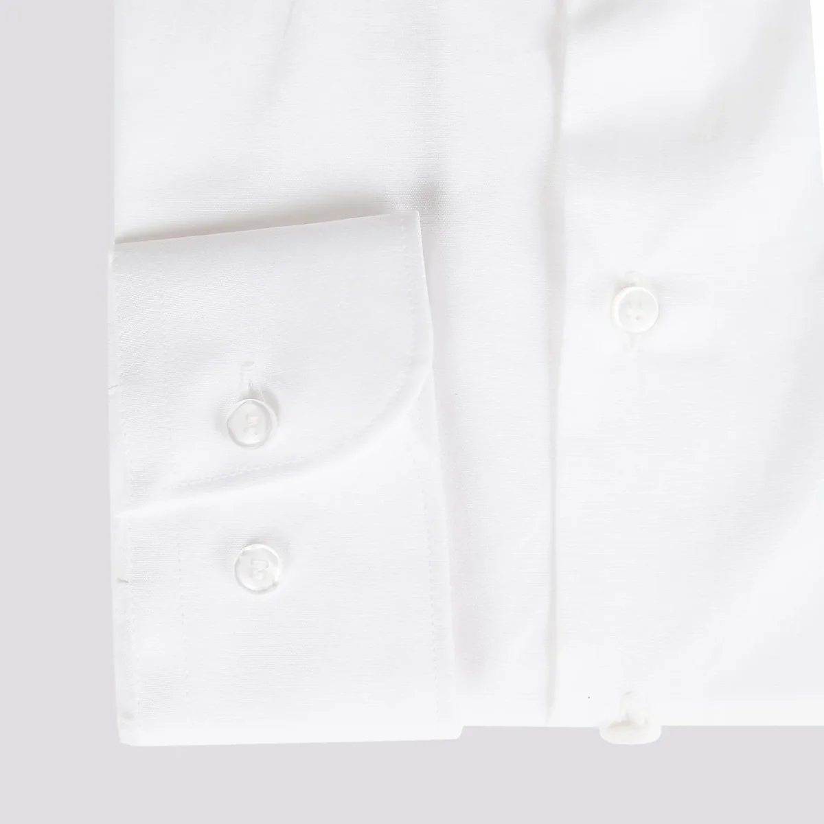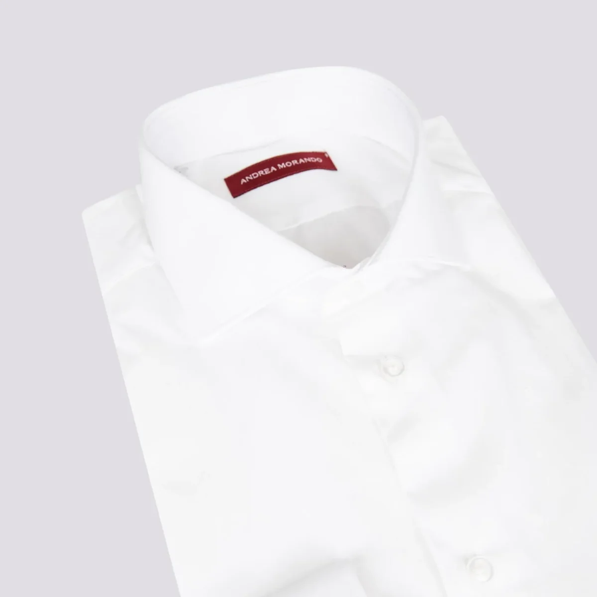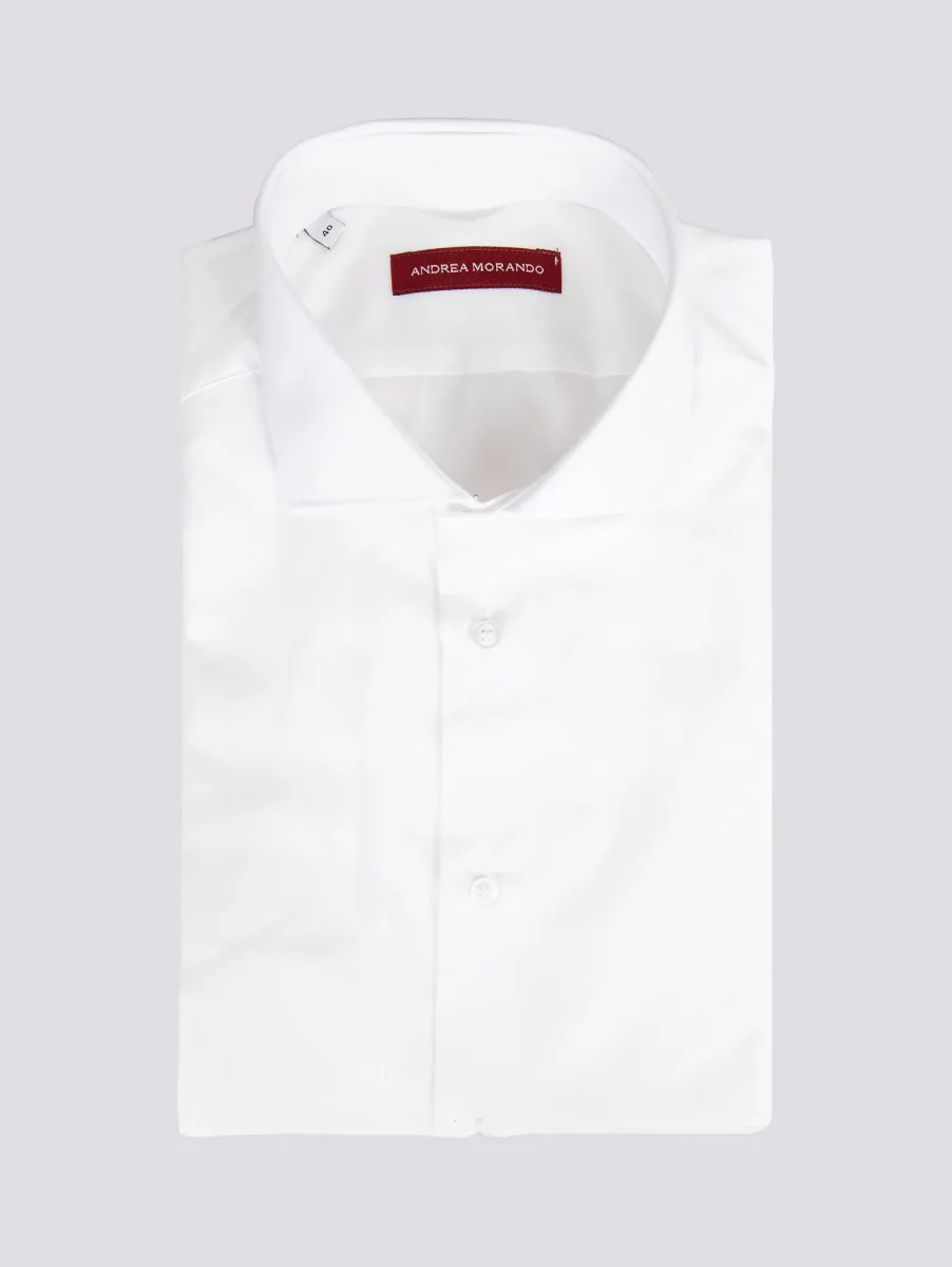 Camicia in cotone con collo francese e bacchette estraibili. Bottone in color madreperla, vestibilità regolare. Chiusura cucitura con mosca. Made in Italy.