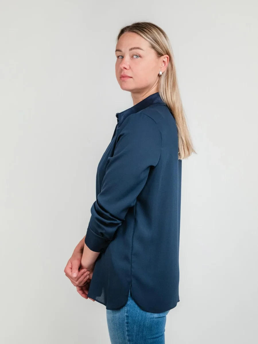 Camicia effetto velato blu con bottoni in tonalità.