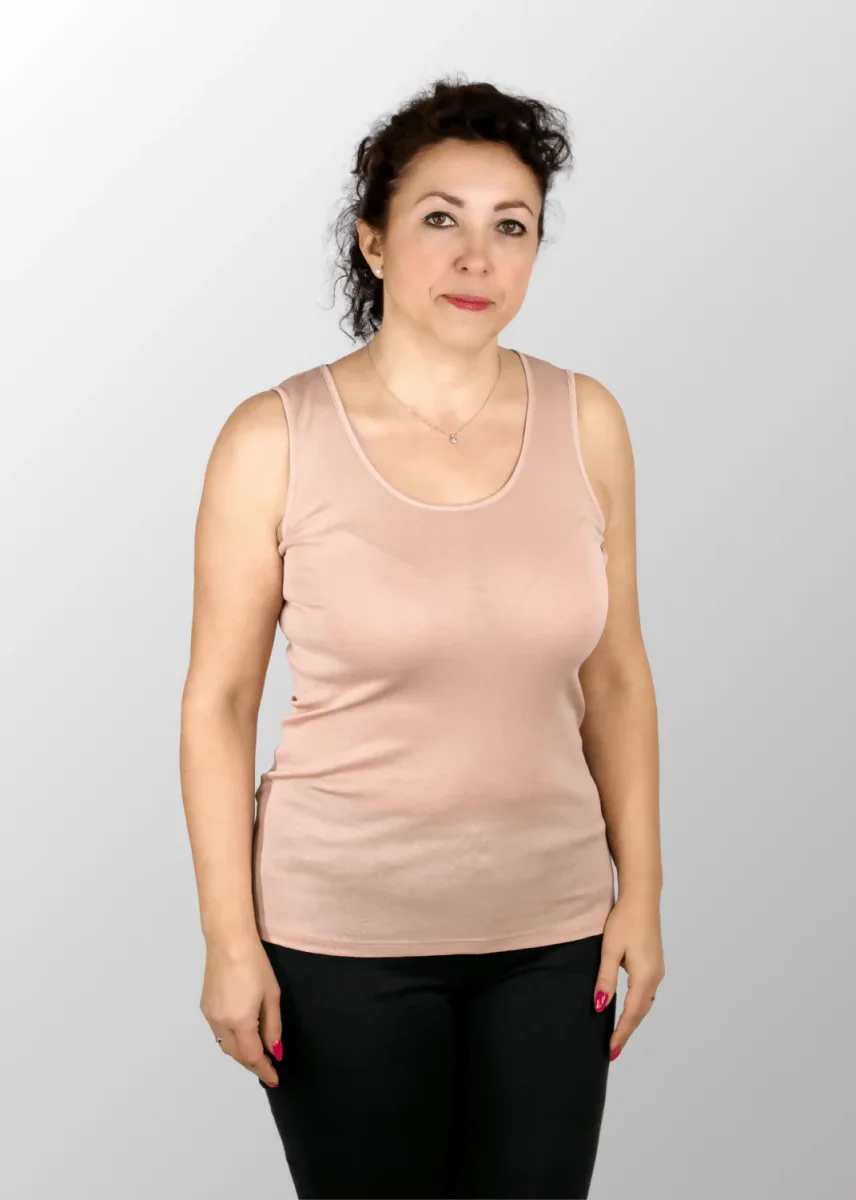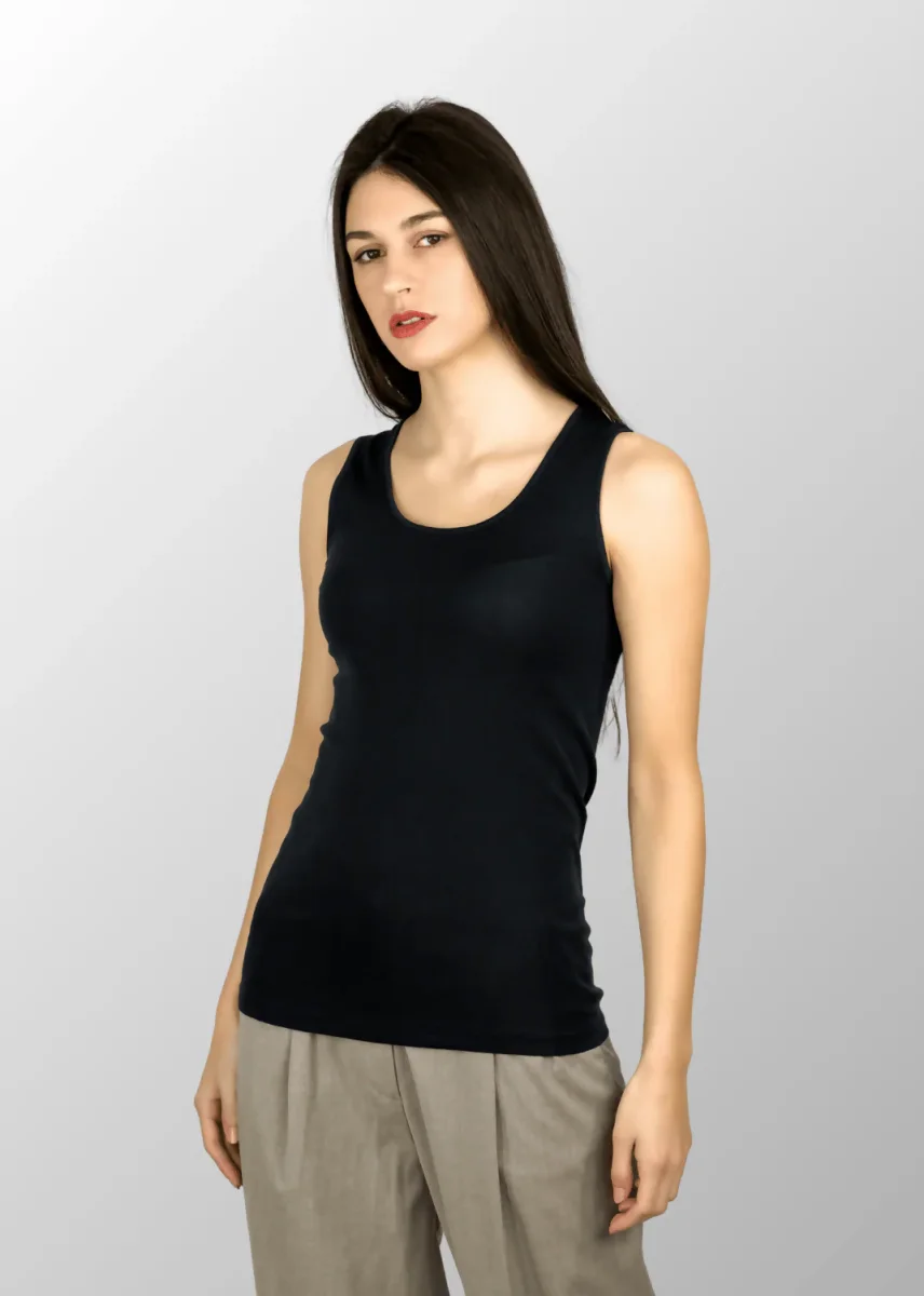 Canotta a spalla larga realizzata in Cotone Seta (senza elastan), una fibra naturale pregiata che dona al capo una mano delicata ed estremamente fresca e morbida consigliata nelle giornate estive. Questo tessuto è molto elastico e garantisce un’ottima vestibilità in tutte le taglie.