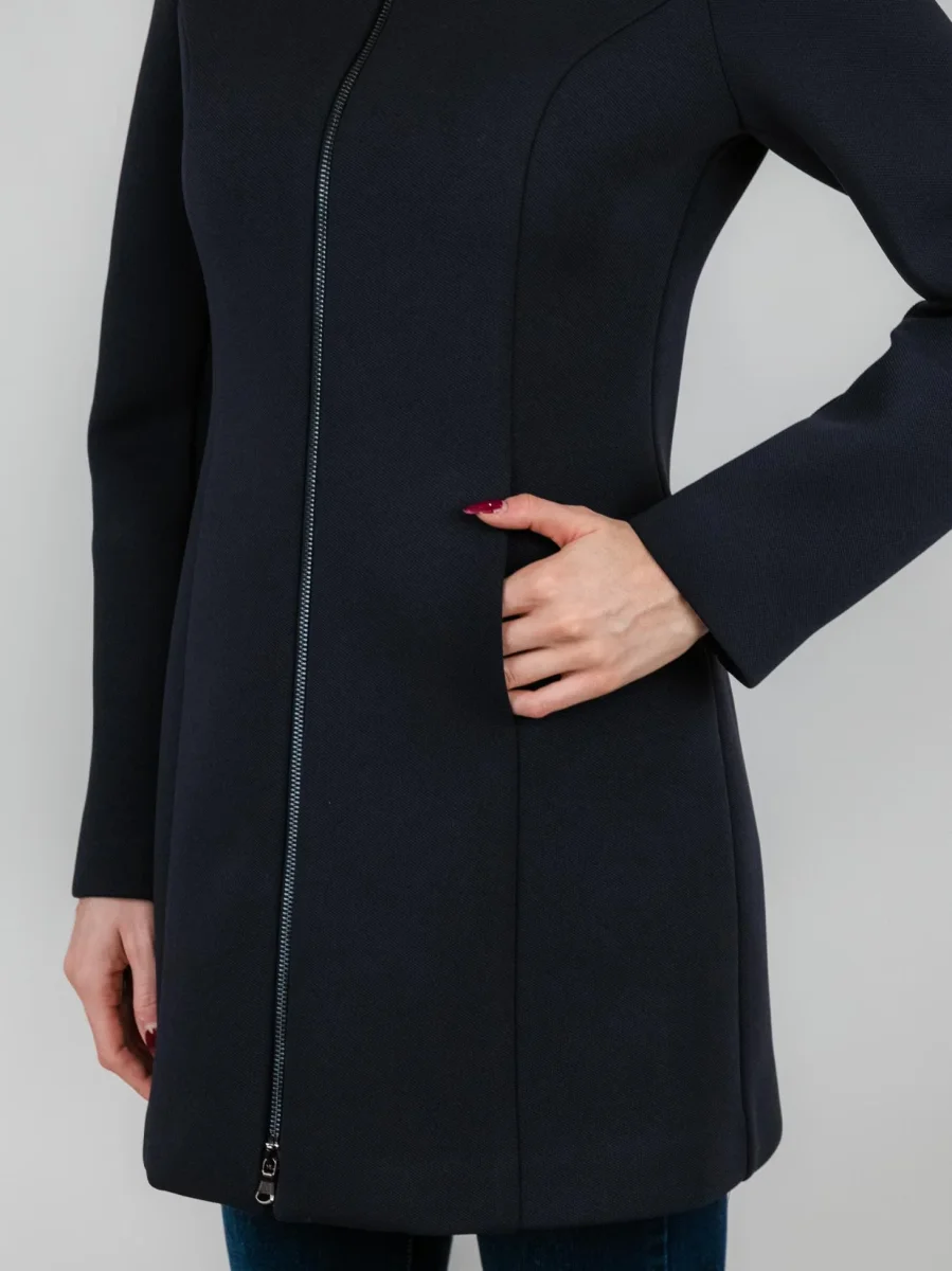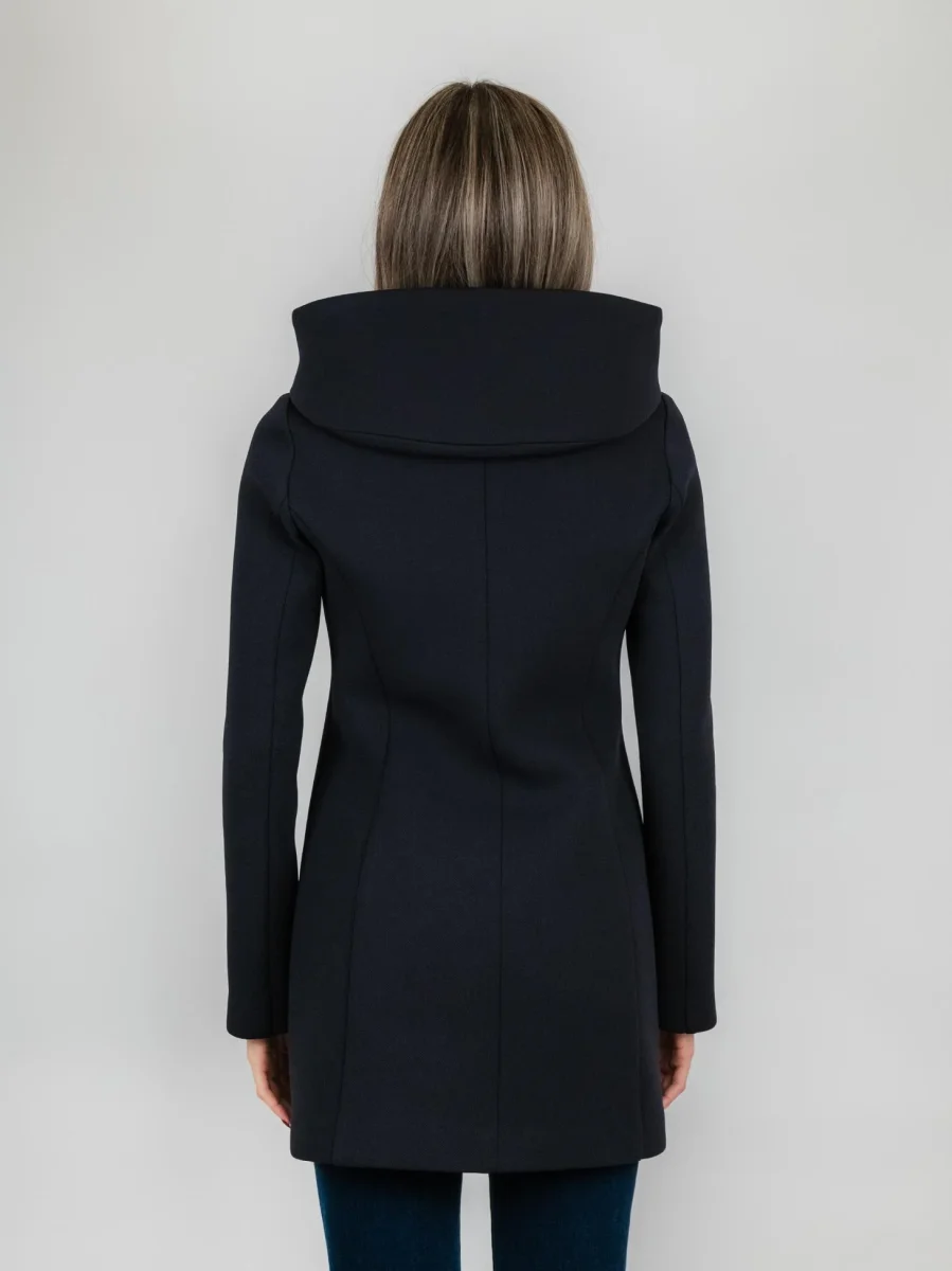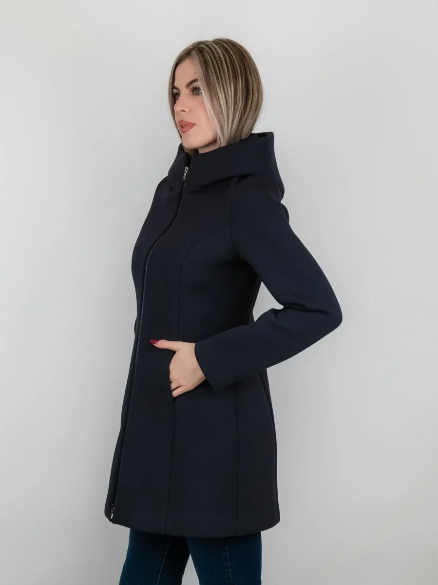 Cappottino tecnico blu con cappuccio.