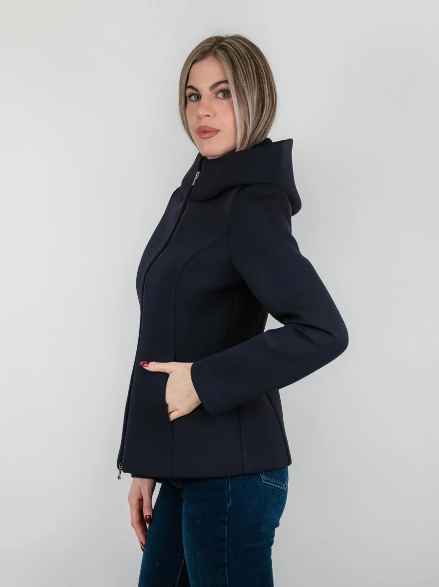 Cappuccio ampio perfetto per le giornate di pioggia più intense. Doppia tasca a filo frontale.