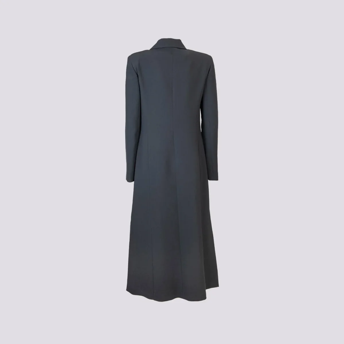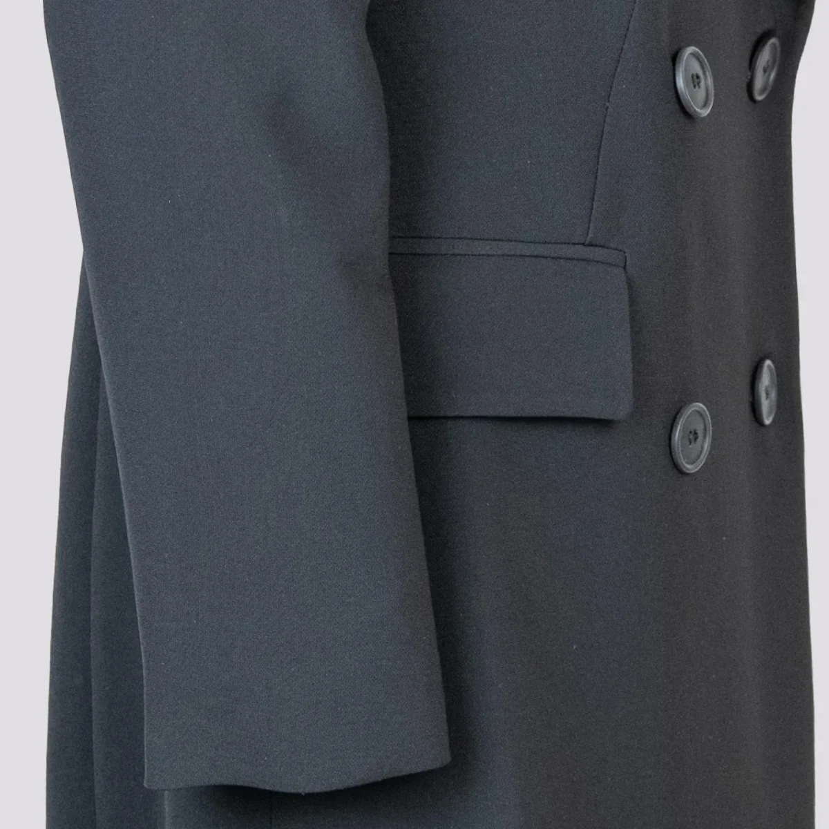 Cappotto doppiopetto nero con doppio spacco laterale. Un capo elegante e chic da indossare sia sopra un look casual che sopra a un tubino per una serata elegante. Collo rever classico. Disponibile anche in una variante velluto. Doppia tasca cucita con possibilità di apertura. Vestibilità regolare tendenzialmente morbida. Peso medio.