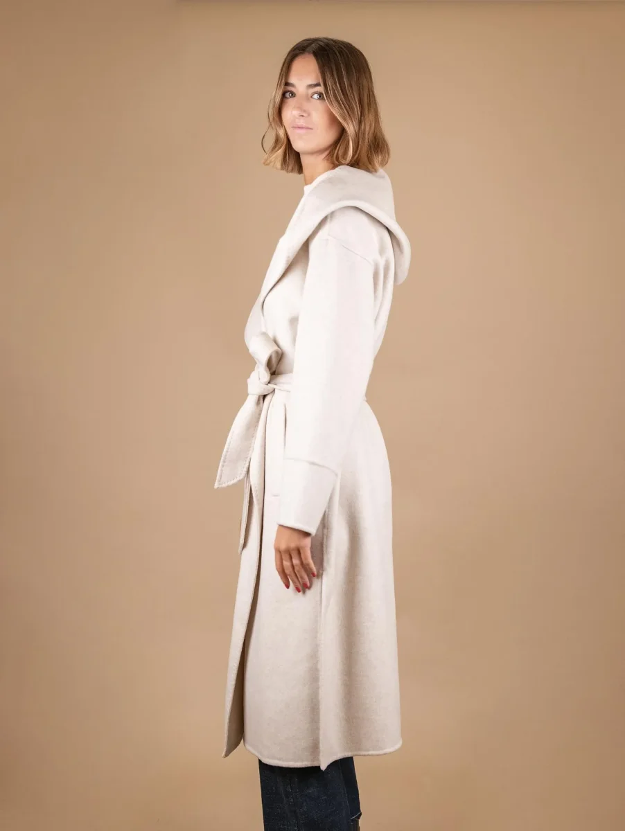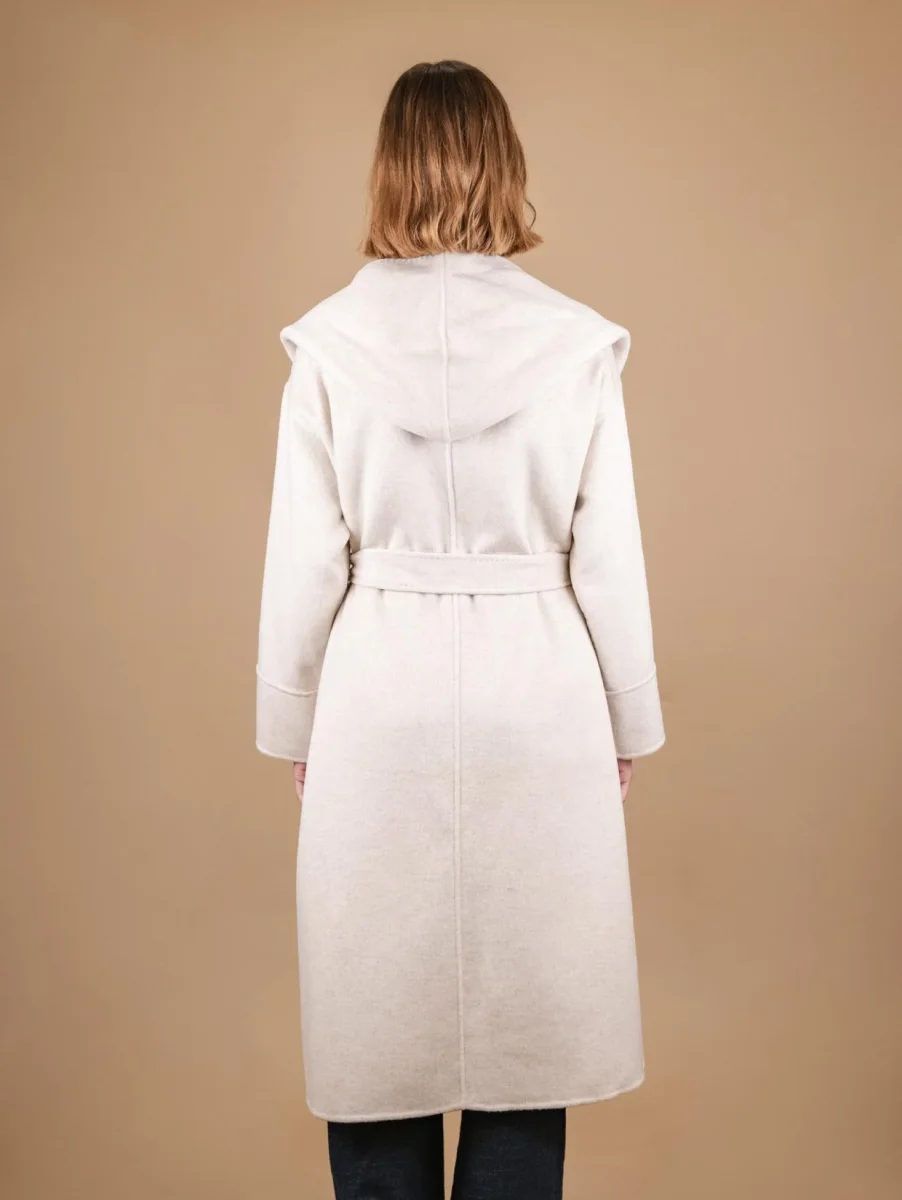 CAPPOTTO LUNGO CON CAPPUCCIO IN MISTO LANA PANNA