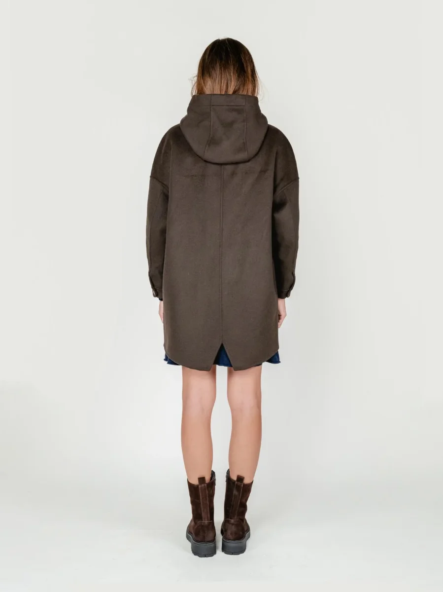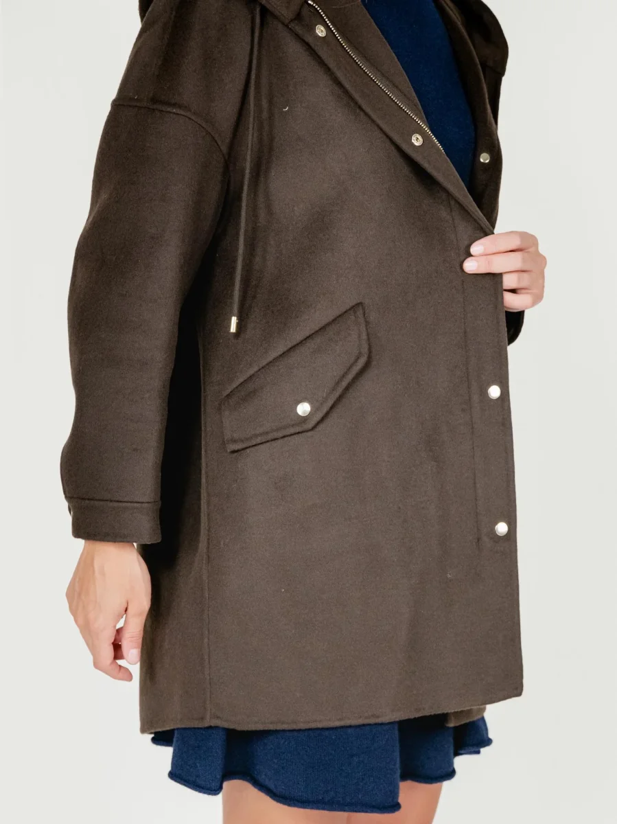 Dettaglio coulisse per regolare la vestibilità del cappuccio.