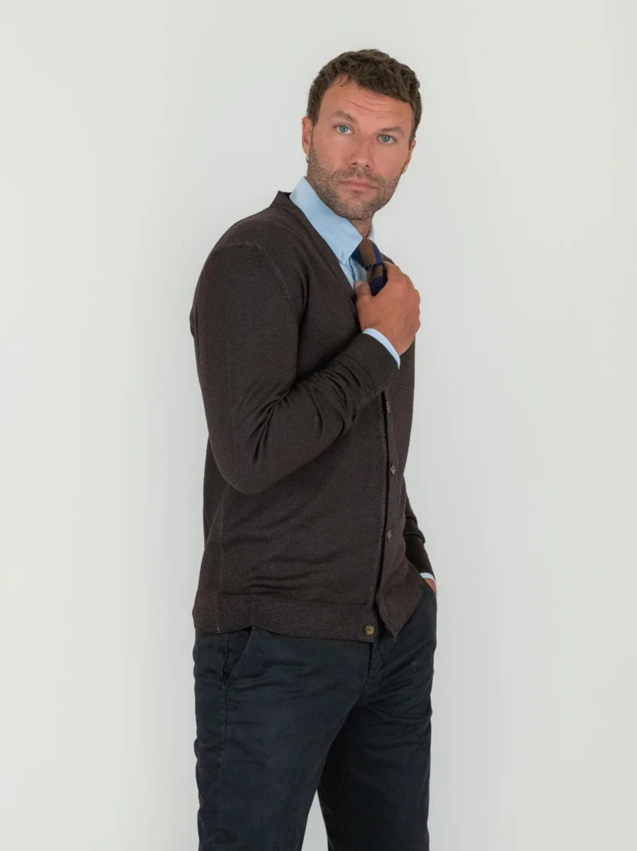 Cardigan in lana merino testa moro.