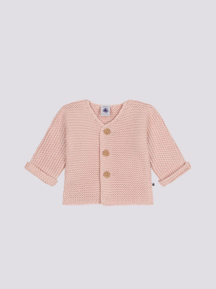 Cardigan in tricot a punto legaccio: un must-have per i bebè! Apertura integrale con bottoni sul davanti per una facile vestibilità.