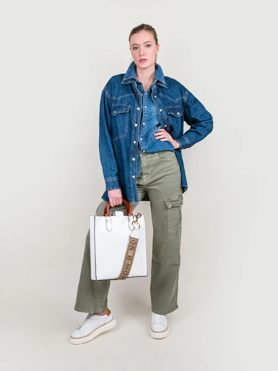 Borsa a forma di cartella in pelle effetto naplak bianca “Empire”