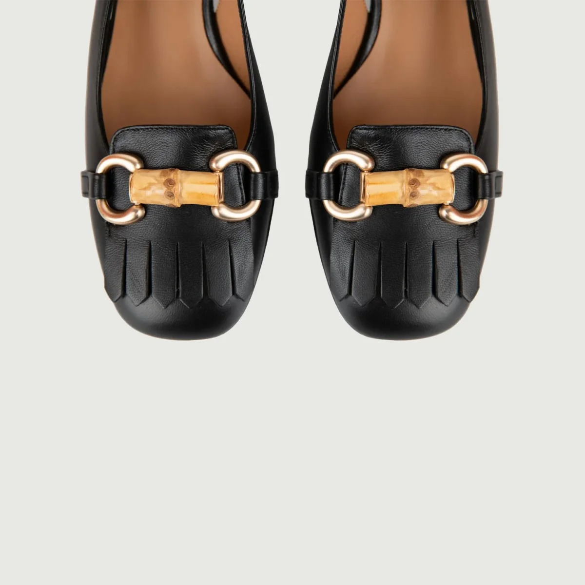 Chanel con taco quadrato e nappe frontali.