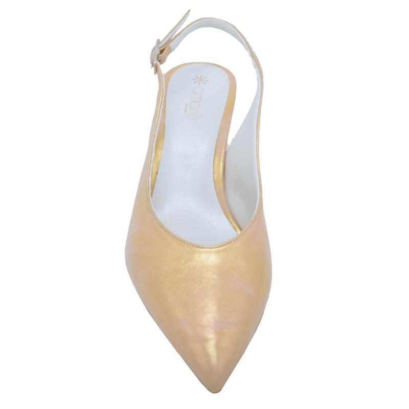 Chanel è un’elegante scarpa da donna prodotta artigianalmente in Italia disponibile nei colori Blu, Marrone, Nero, Oro.